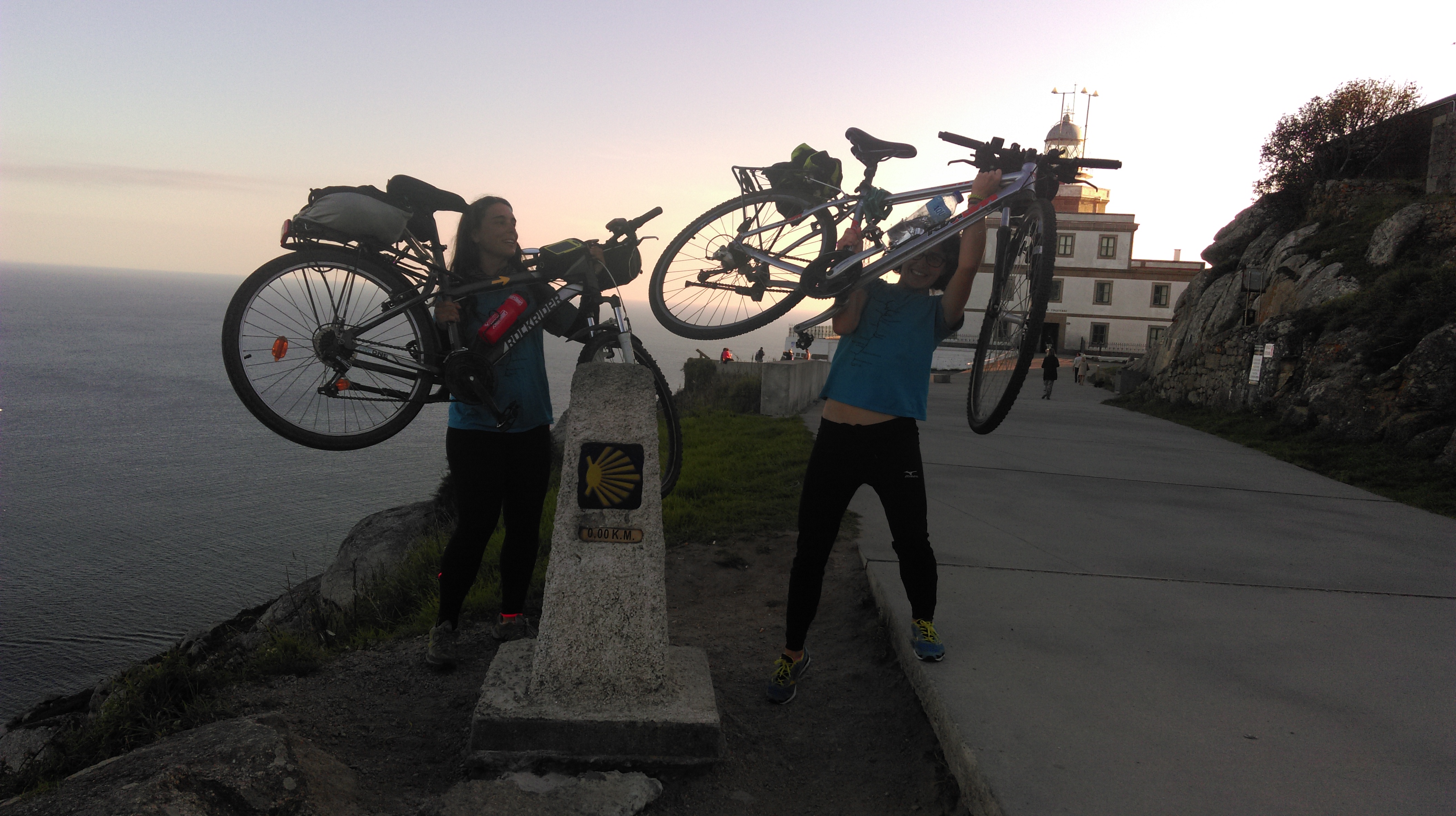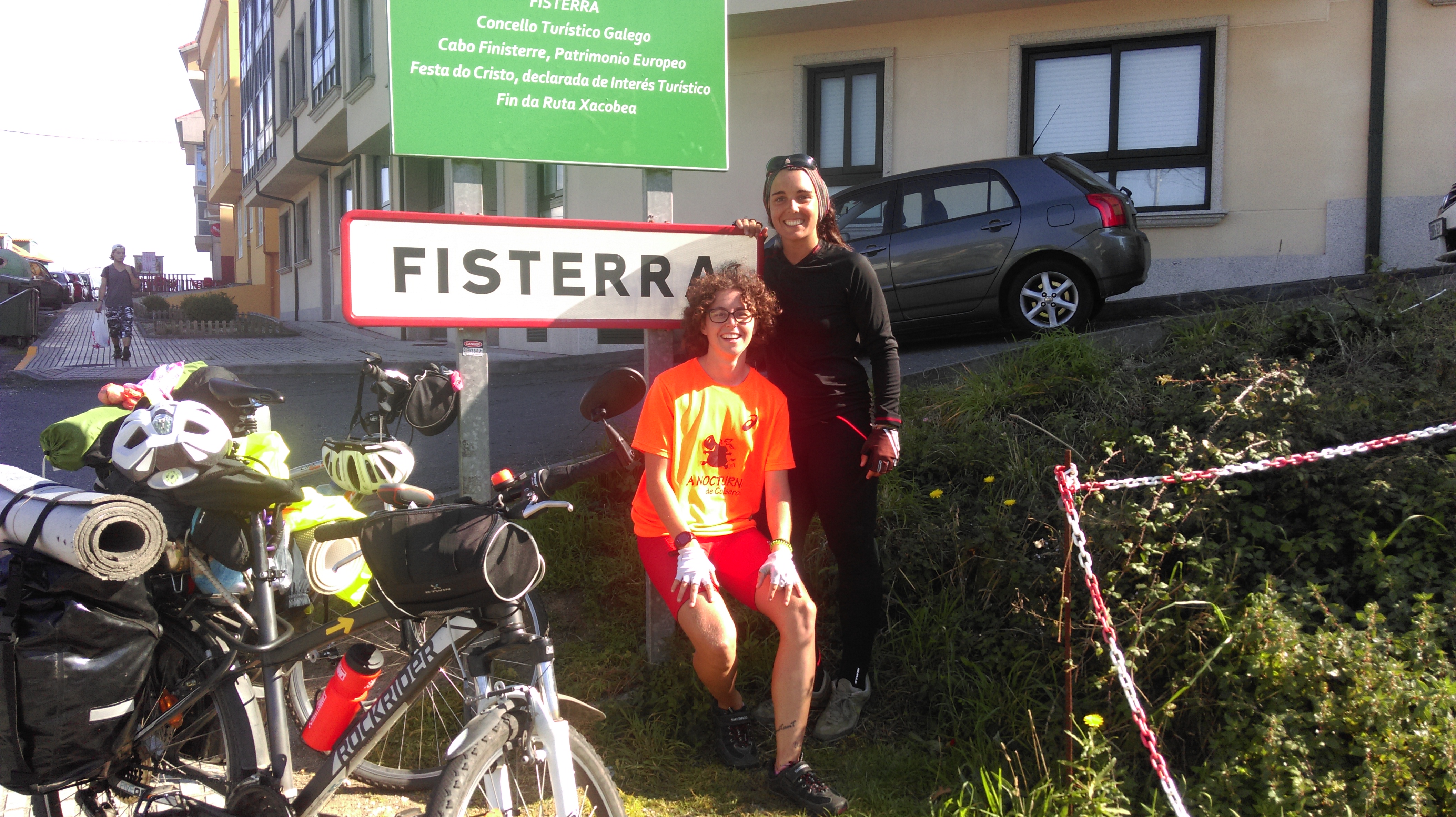 Las subidas y bajadas son infinitas. Superamos Brión montadas y todas las cuestas siguientes. Vamos toda la etapa por carretera. No cogemos camino en ningún momento. En el desvío final a unos 25km de Finisterre empiezan los descensos pronunciados que nos sacan grandes sonrisas.