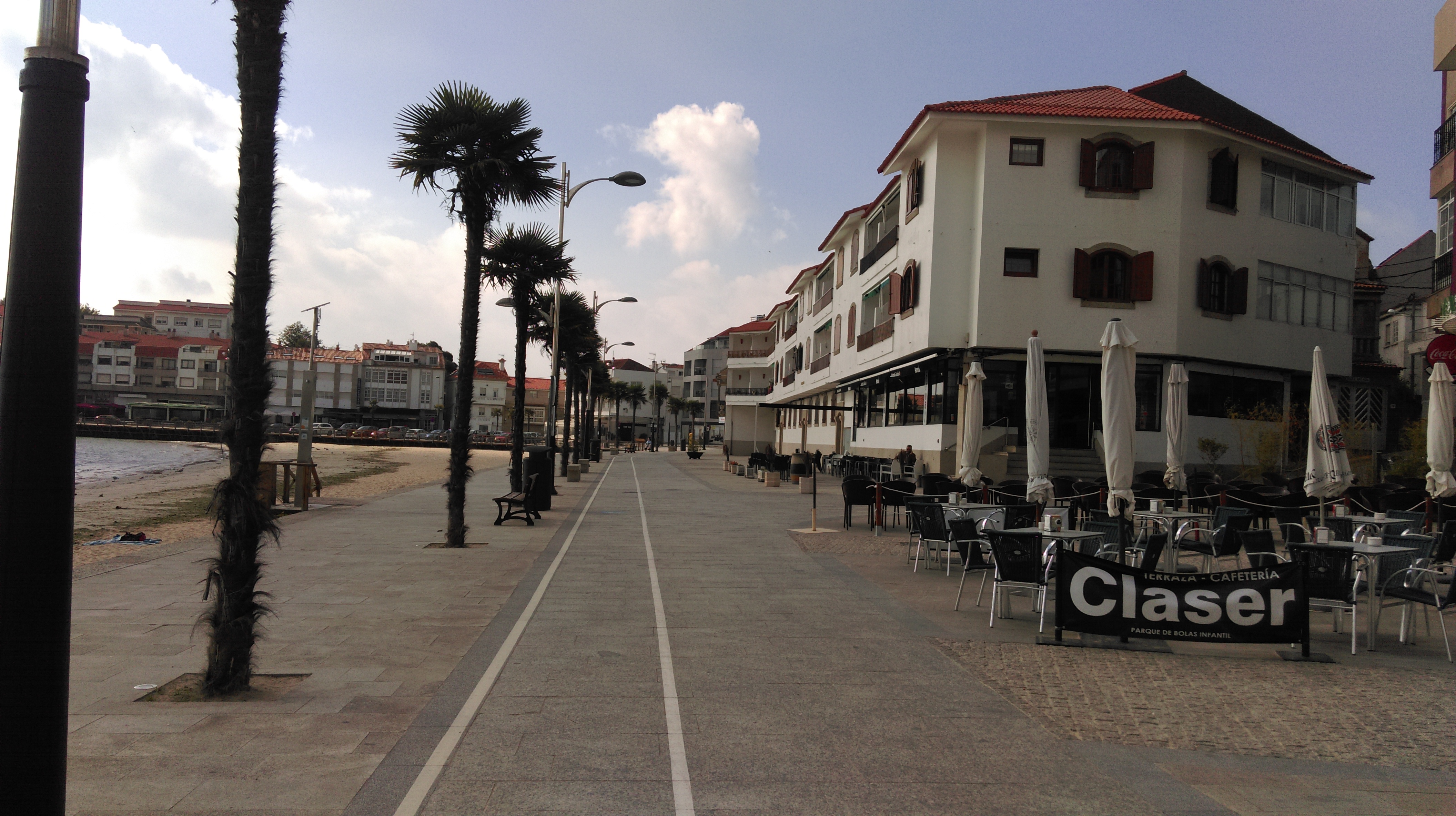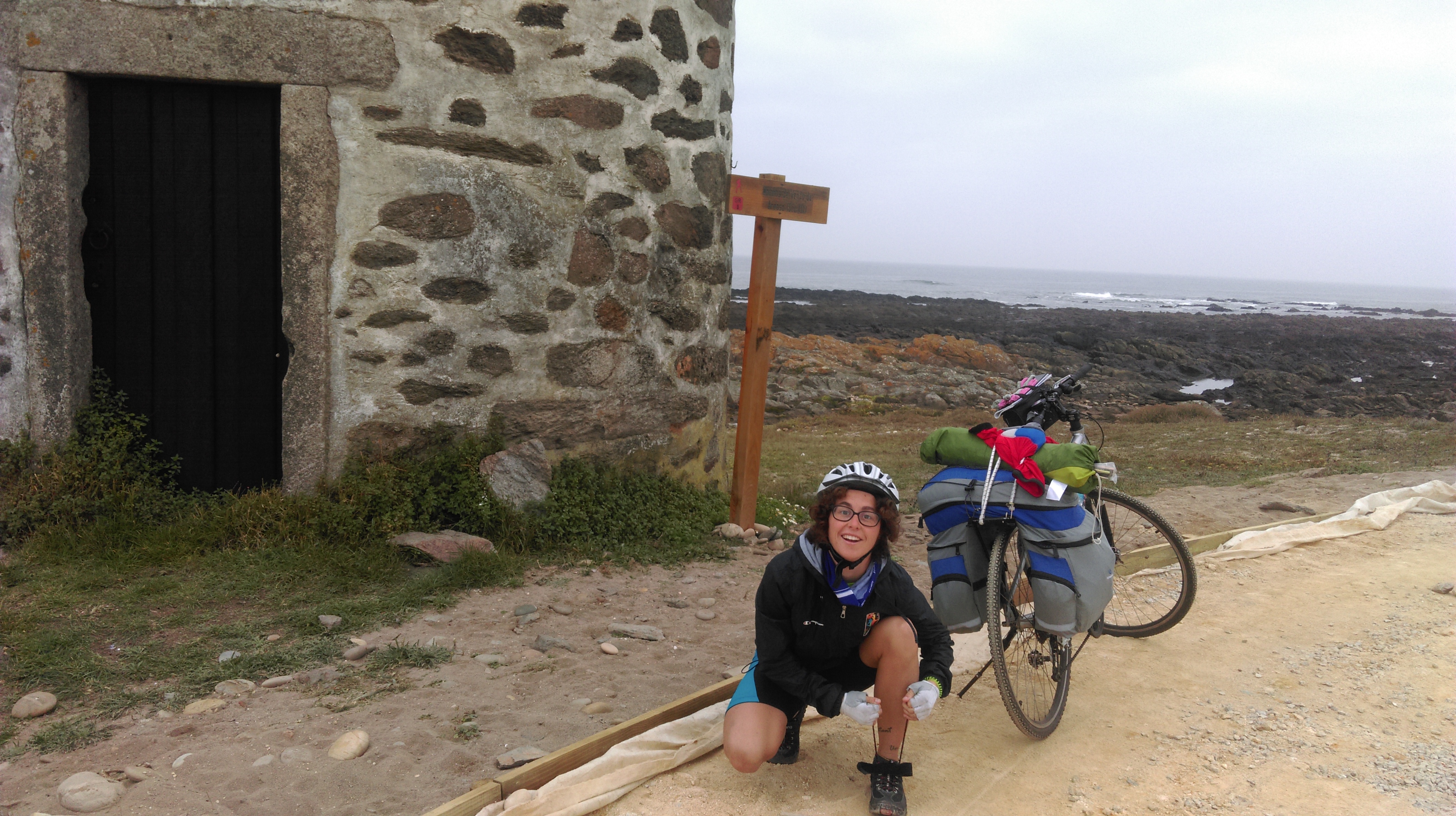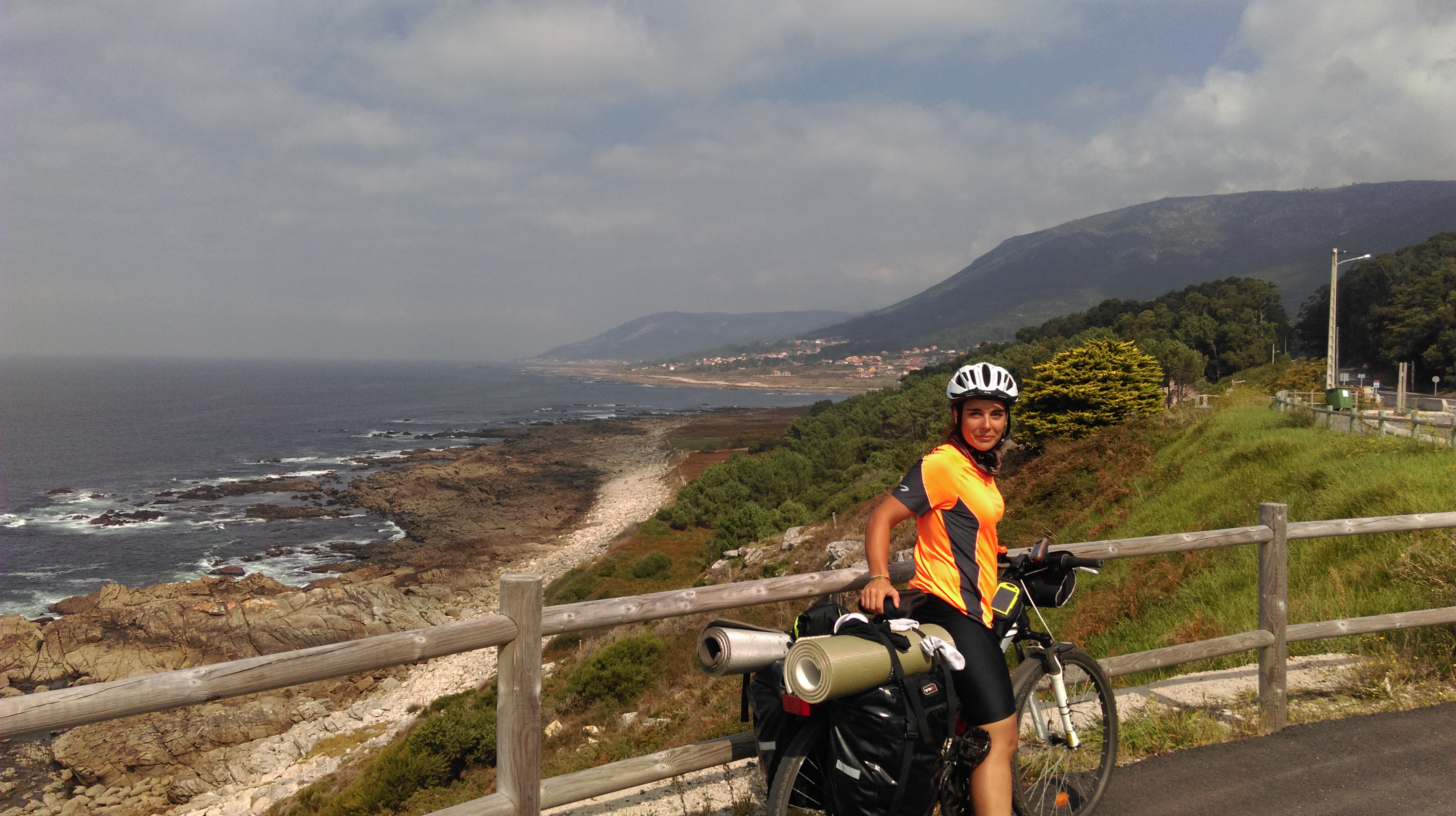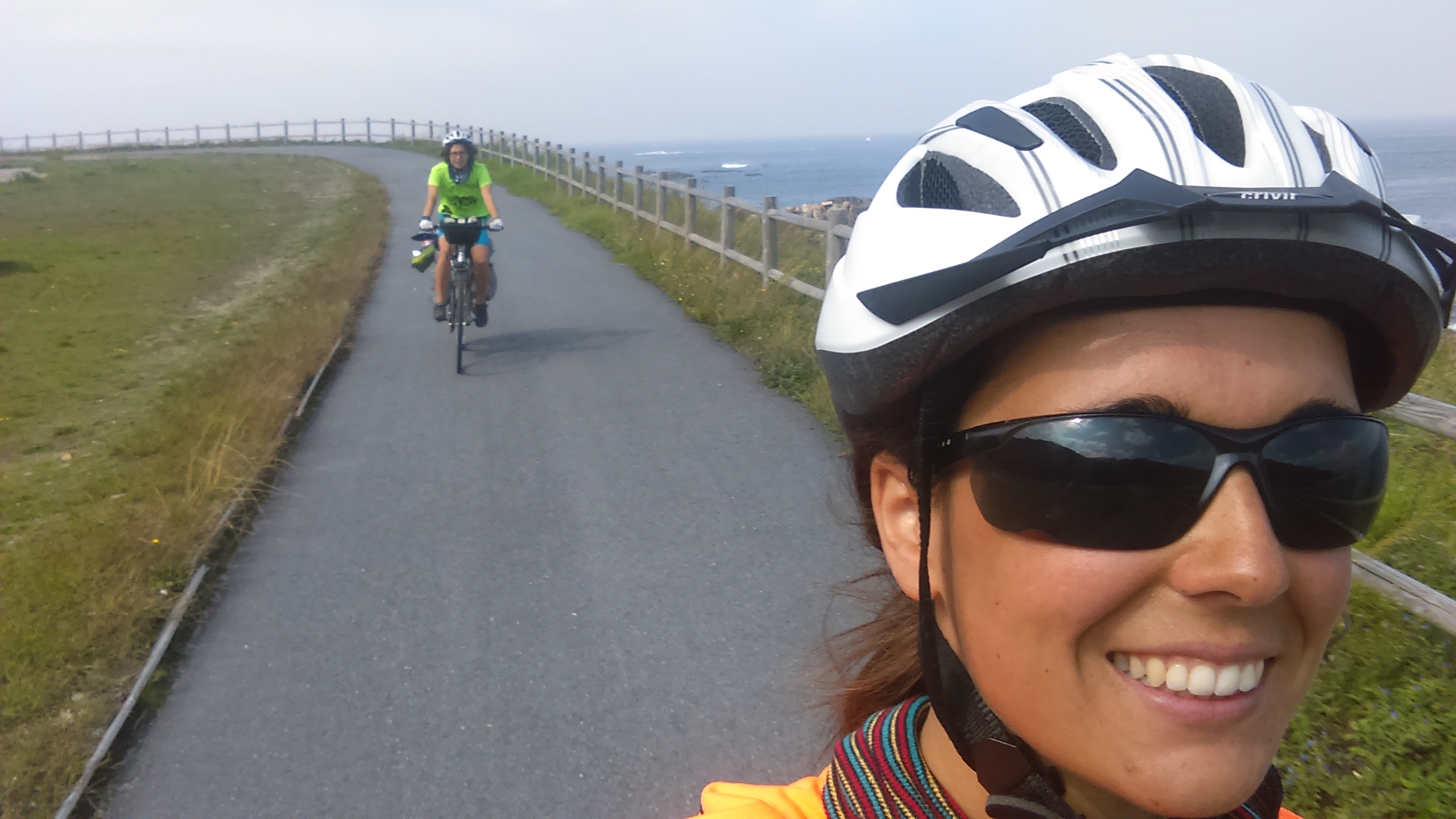 Esta etapa deja atrás Portugal, hoy entraremos a España. Salimos de Viana por la costa por una vía paralela al mar en construcción. La vía es transitable aunque hay algún tramo en mal estado en el que tenemos que cargar la bici o arrastrarla. Pinchamos una rueda trasera (la de mi compañera).