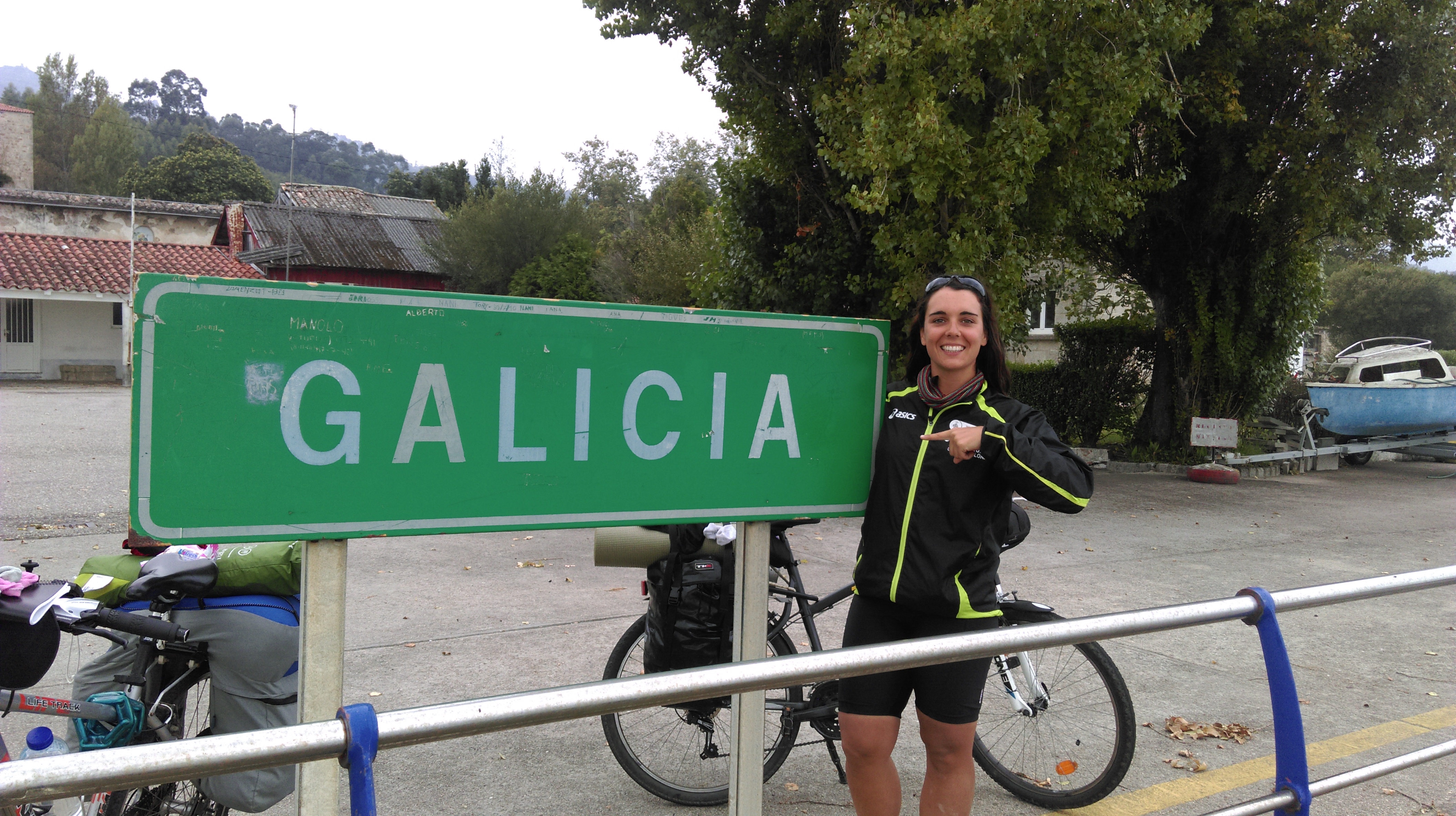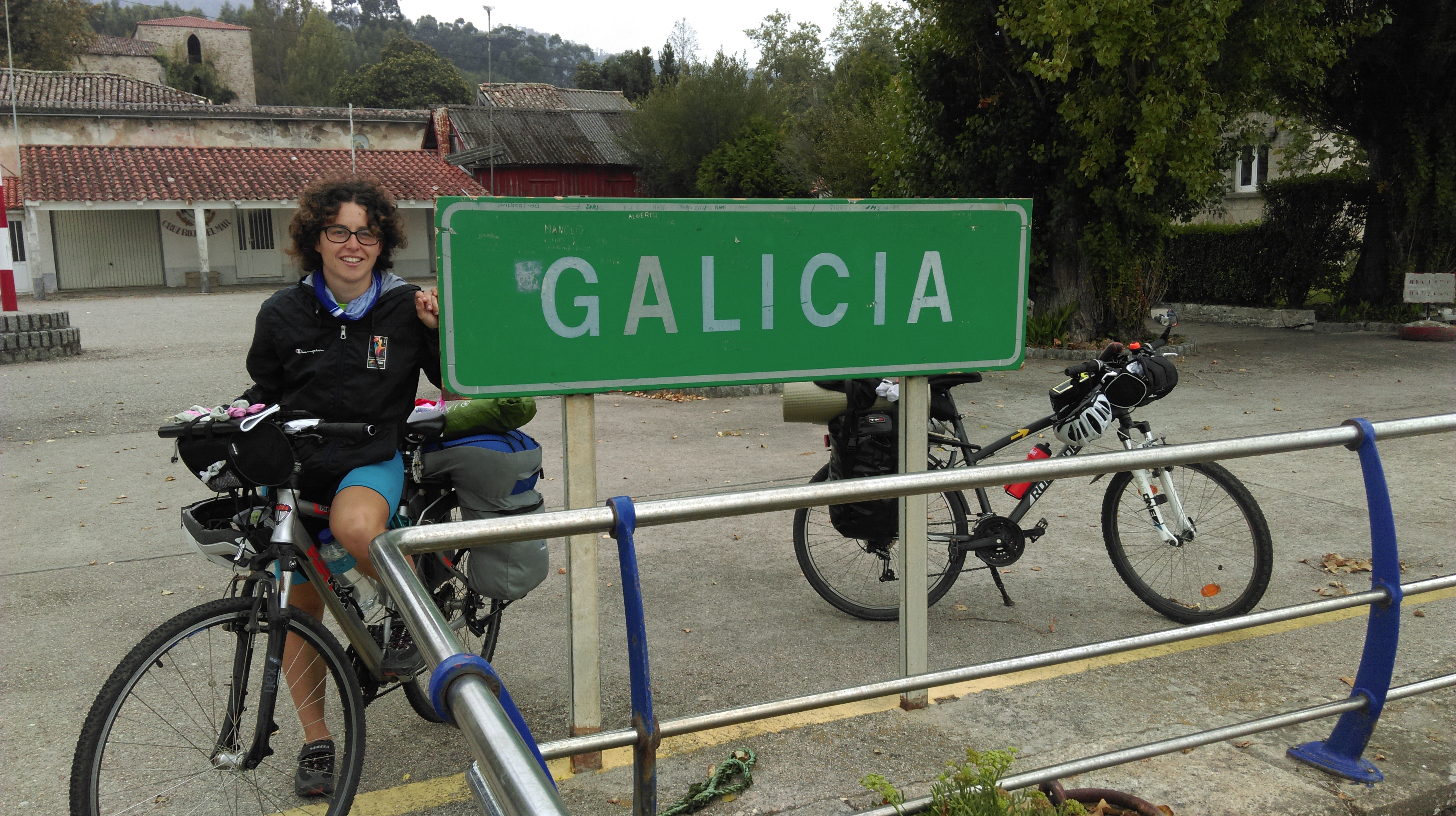 Nos deja en Guarda donde nos recibe un cartel verde “GALICIA”. Seguimos el camino que empieza por un bosque no demasiado apto para bicis (sabemos que hay unas ciclo vías que siguen la costa haciendo el camino unos 6km más largo).
