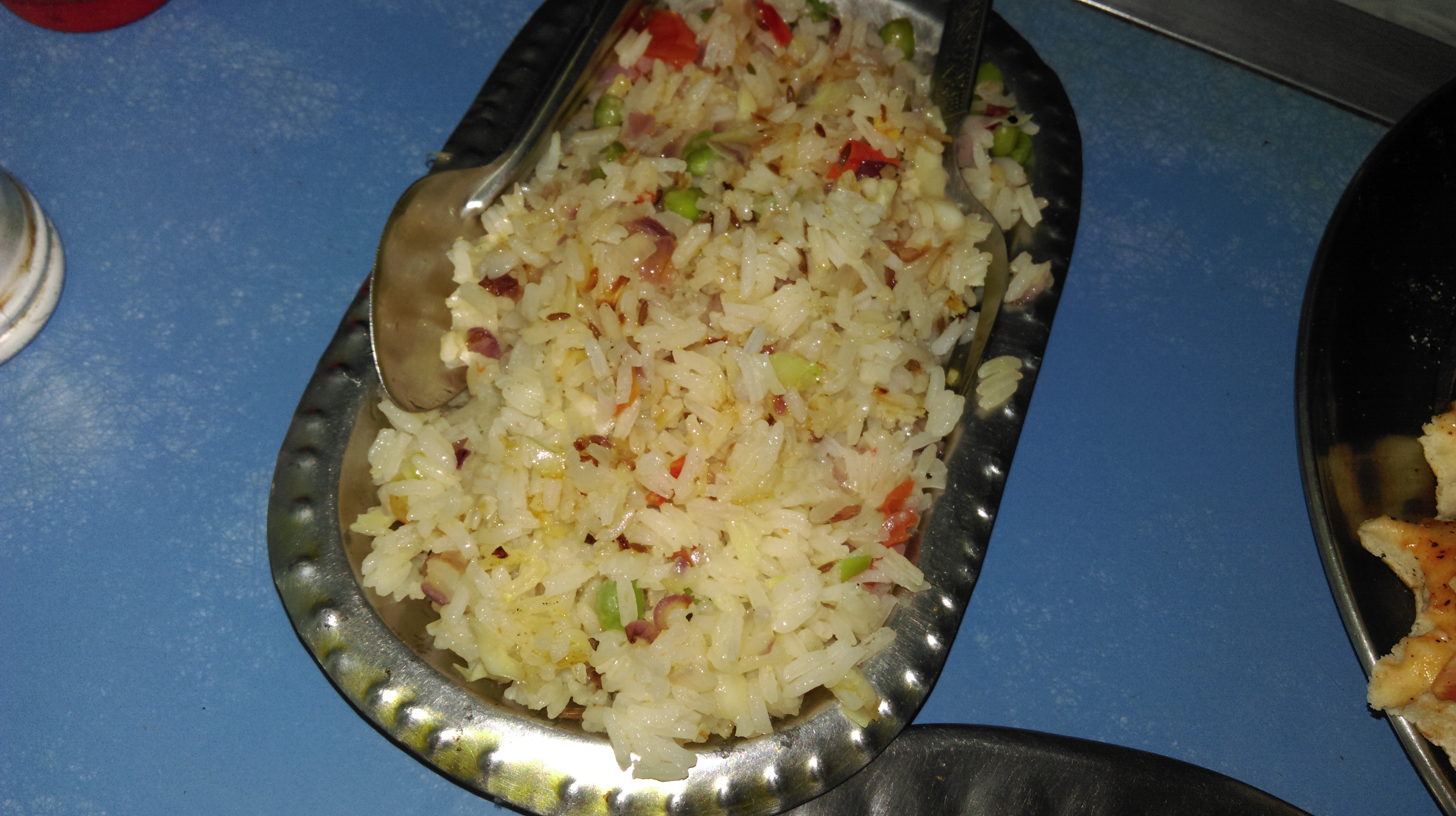 Después hemos ido a comer a Bikamer. Nuestra guía proponía diferentes restaurantes a muy bajo coste que, hasta ahora, no nos habíamos fiado demasiado. Una media de 100 rp por persona nos parecía excesivamente barato y no nos daba mucha confianza. Aún así, hemos decidido probar y nos ha sorprendido muy gratamente. Hemos comido arroz con verduras, unos nuddles con verduras, una pizza vegetariana y 1 Naan para cada uno de nosotros. Agua y coca-cola. Todo por 280 Rp!!!! Cuando hasta ahora pagábamos una media de 1400 Rp! Osea, que, a partir de ahora, intentaremos ser más inteligentes y no ir a todo lo que parece bonito y más al estilo occidental porque, al fin y al cabo, comemos lo mismo (más o menos) y el precio es infinitamente más bajo.