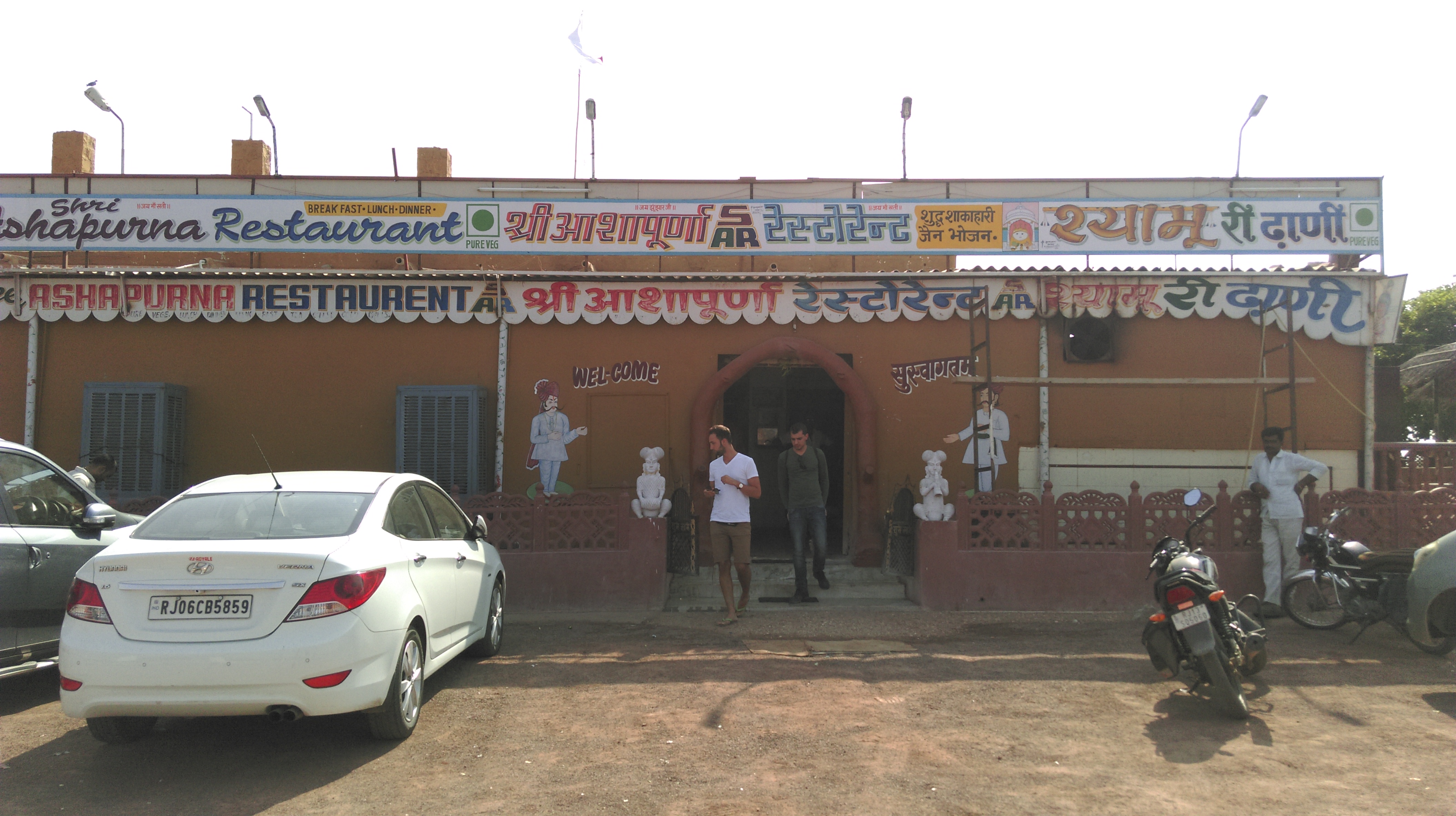 Seguidamente paramos a comer a un restaurante “bueno,bonito,barato” en medio de la carretera ya que aún nos quedan 160 km para el desierto y hasta allí no encontraremos dónde comer. Comemos con Moda Ram y nos ayuda con la elección de nuestra comida, conversamos con el sobre diferentes preguntas que nos surgen a cerca de la vida en la India.