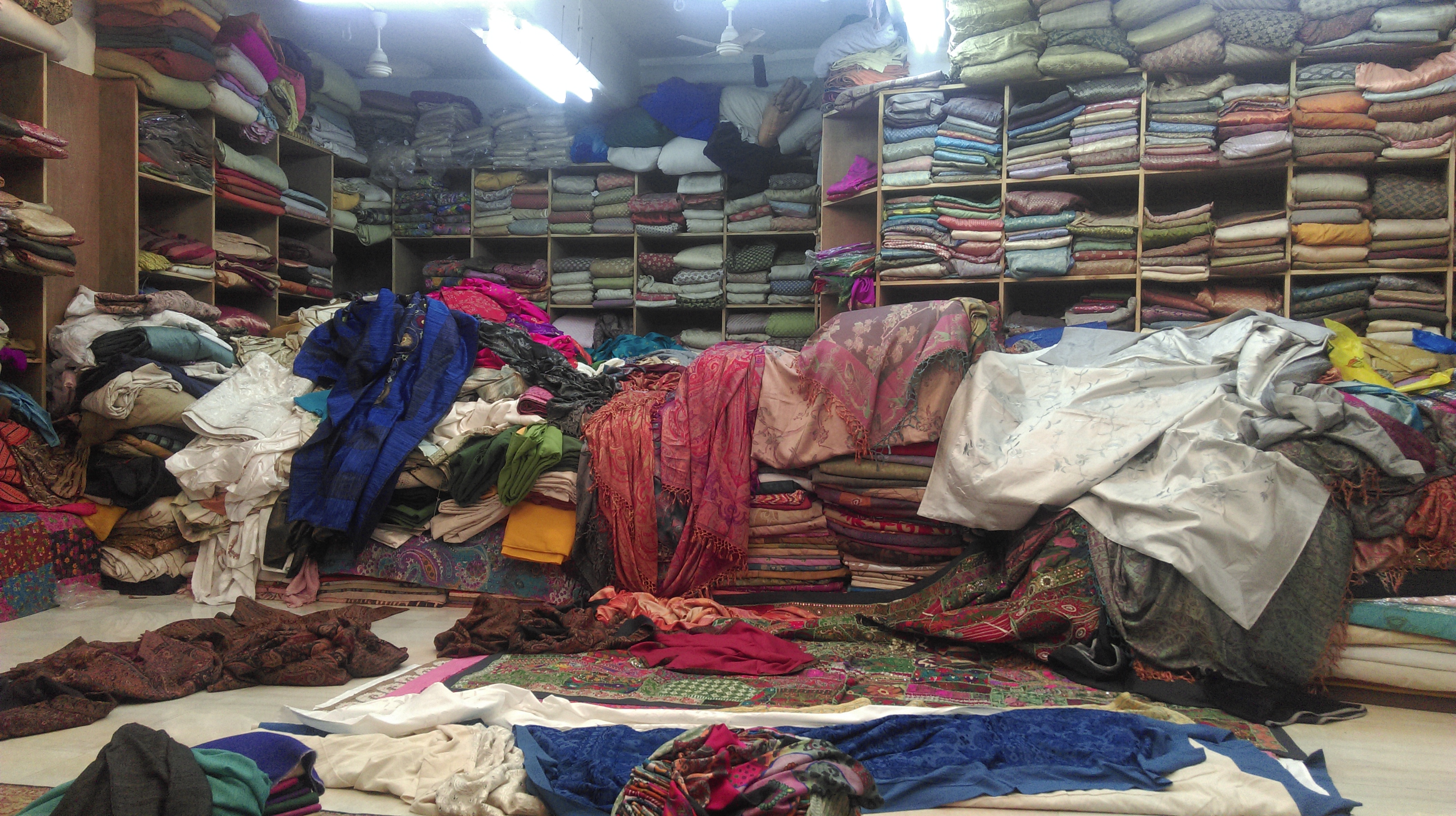 Al finalizar, hemos cogido de nuevo un tuk-tuk que nos ha llevado al bazar donde hemos podido comprobar la zona de compras de Jodhpur. Un verdadero caos!! Hay de todo, desde antigüedades, telas, frutas y verduras, frutos secos, productos de limpieza e higiene… Nos hemos paseado hasta perdernos y hemos acabado entrando en una tienda llamada Mahjarani Art Exportes donde, después de una larga explicación y demostración de sus telas, hemos acabado comprando algún ejemplar.