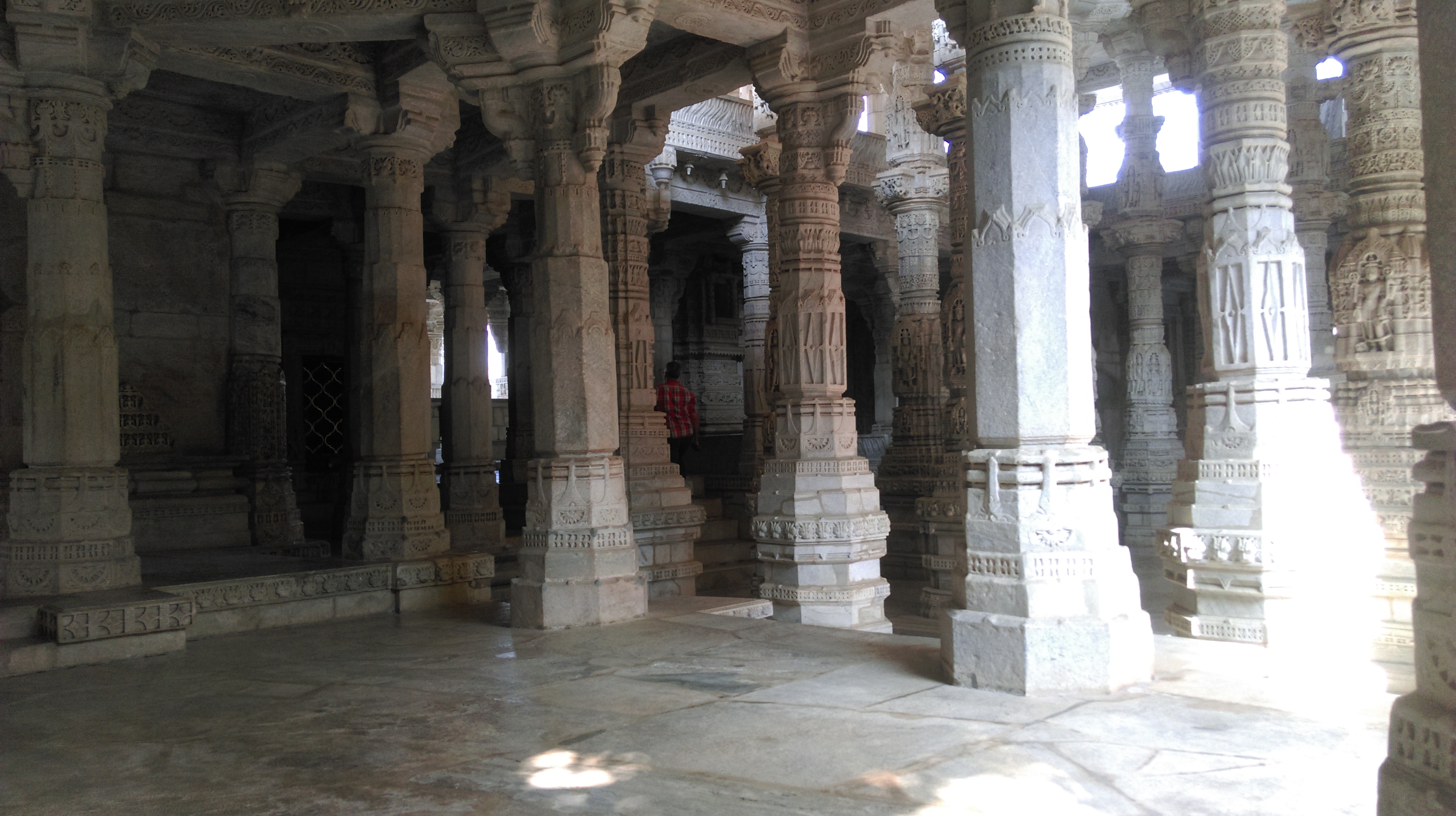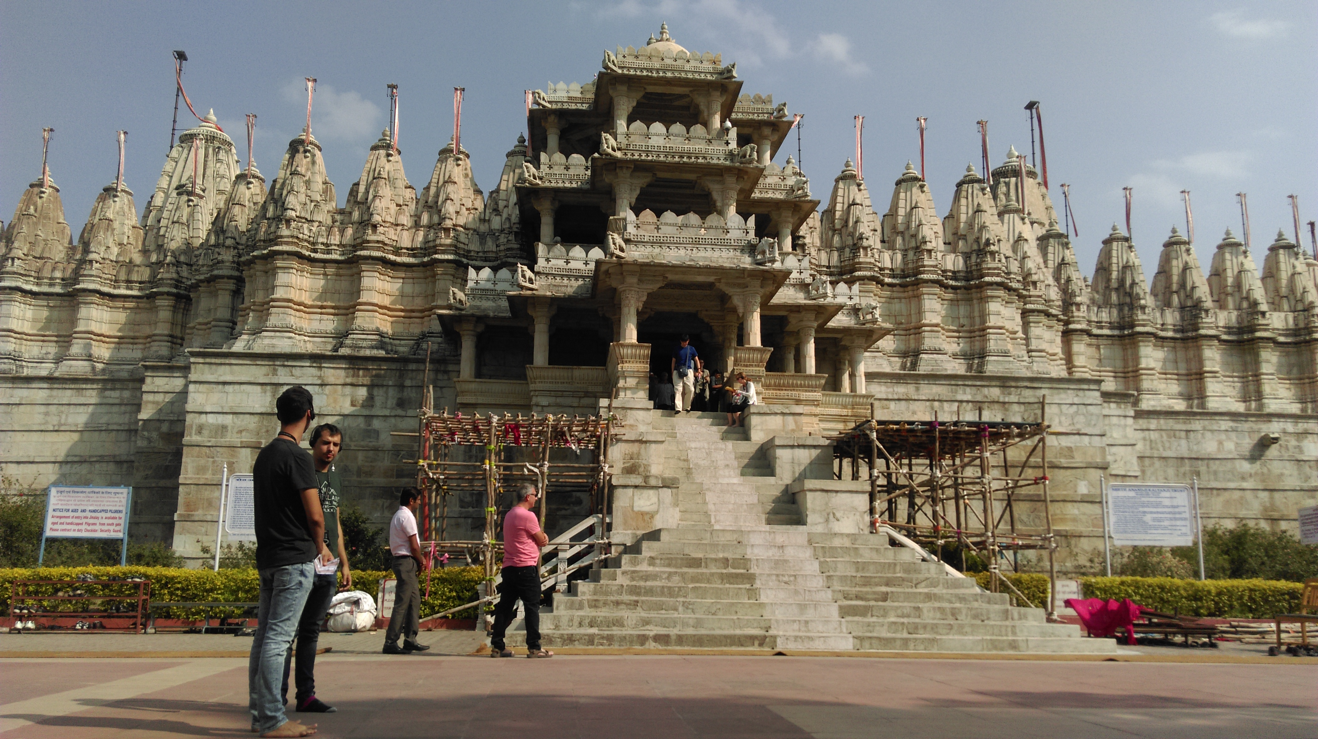 Tenemos un buen rato de viaje, así que nos lo tomamos con calma. A las 13.30 llegamos a Ranakpur, un pequeño pueblo caracterizado por su enorme templo Jainista llamado Jaina. Una vez allí, nos ponemos pantalón largo, camisetas que nos cubran los hombros y dejamos todo lo que llevamos encima. En el templo no se puede entrar ni con bebida/comida, con nada que lleve cuero (monederos, cinturones) y, tampoco, las mujeres que en ese momento tengan la menstruación.