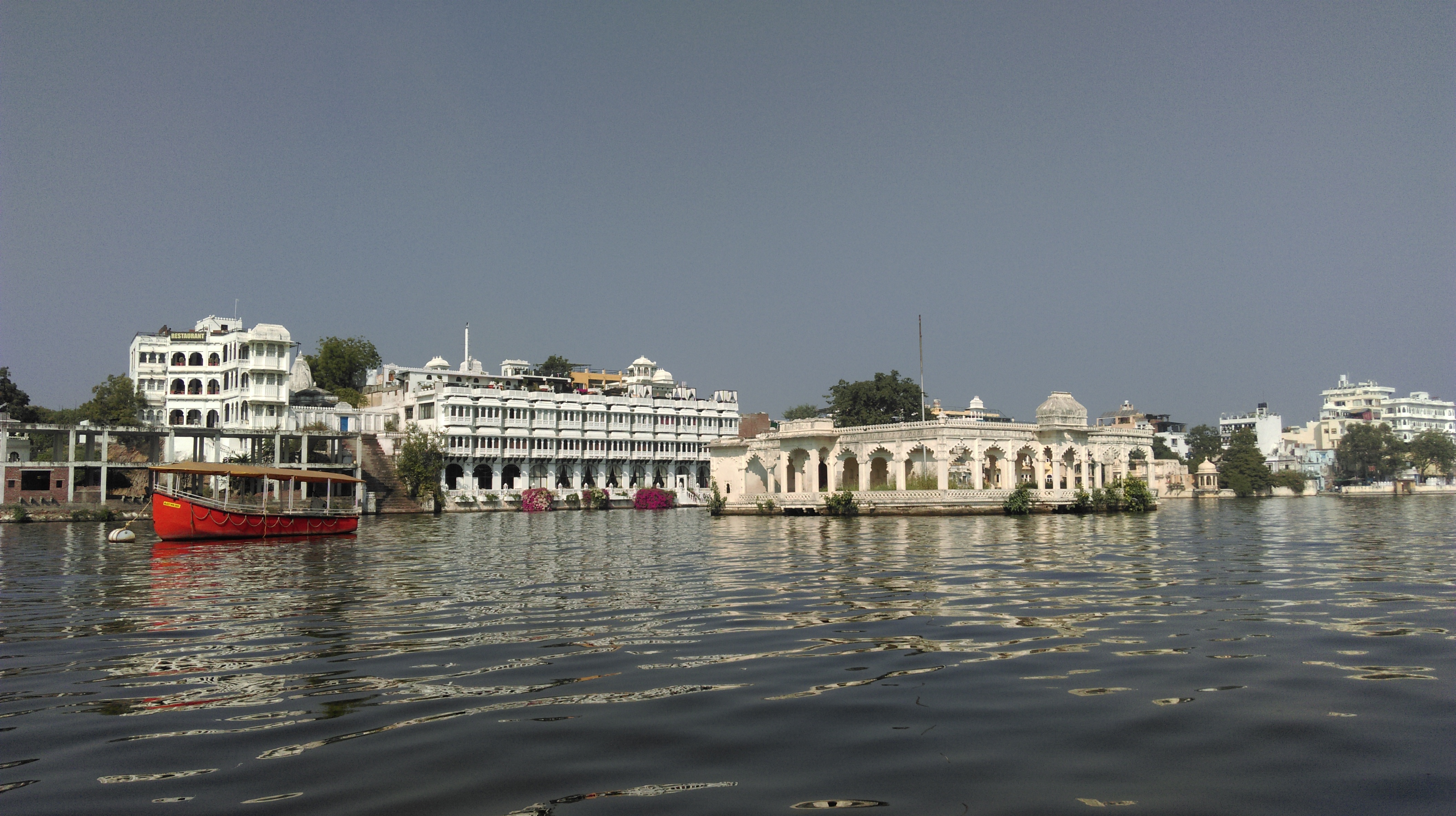Seguidamente, hemos ido caminando hasta el embarcadero del lago pichola donde hemos cogido el bote que salía a las 10:00. Nos ha costado 400 Rp por persona y nos ha dado una vuelta por todo el lago hasta dejarnos Jagmandir, la isla que hay en el lago y que es como un pequeño palacio con jardines y restaurantes para tomar algo.