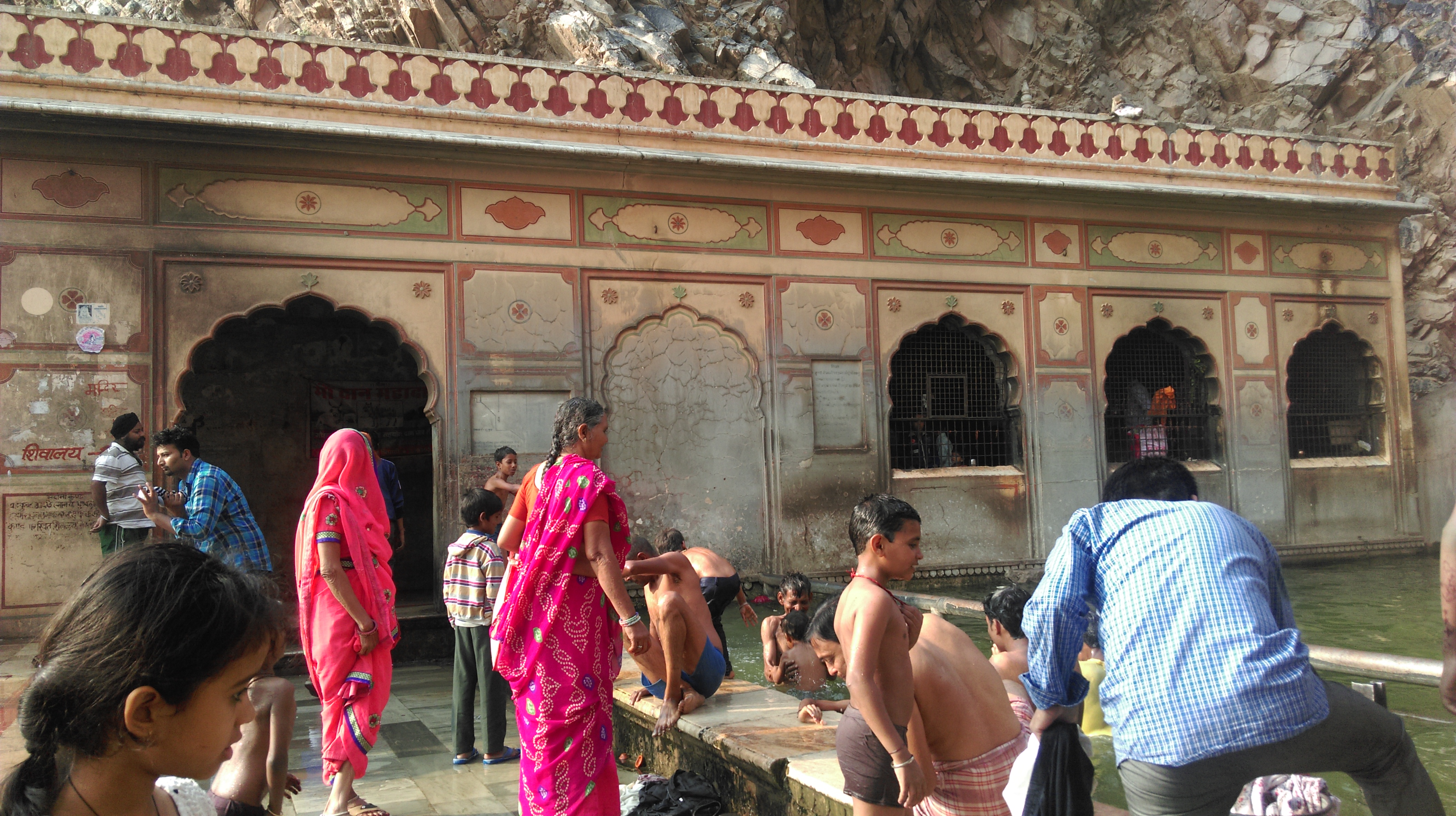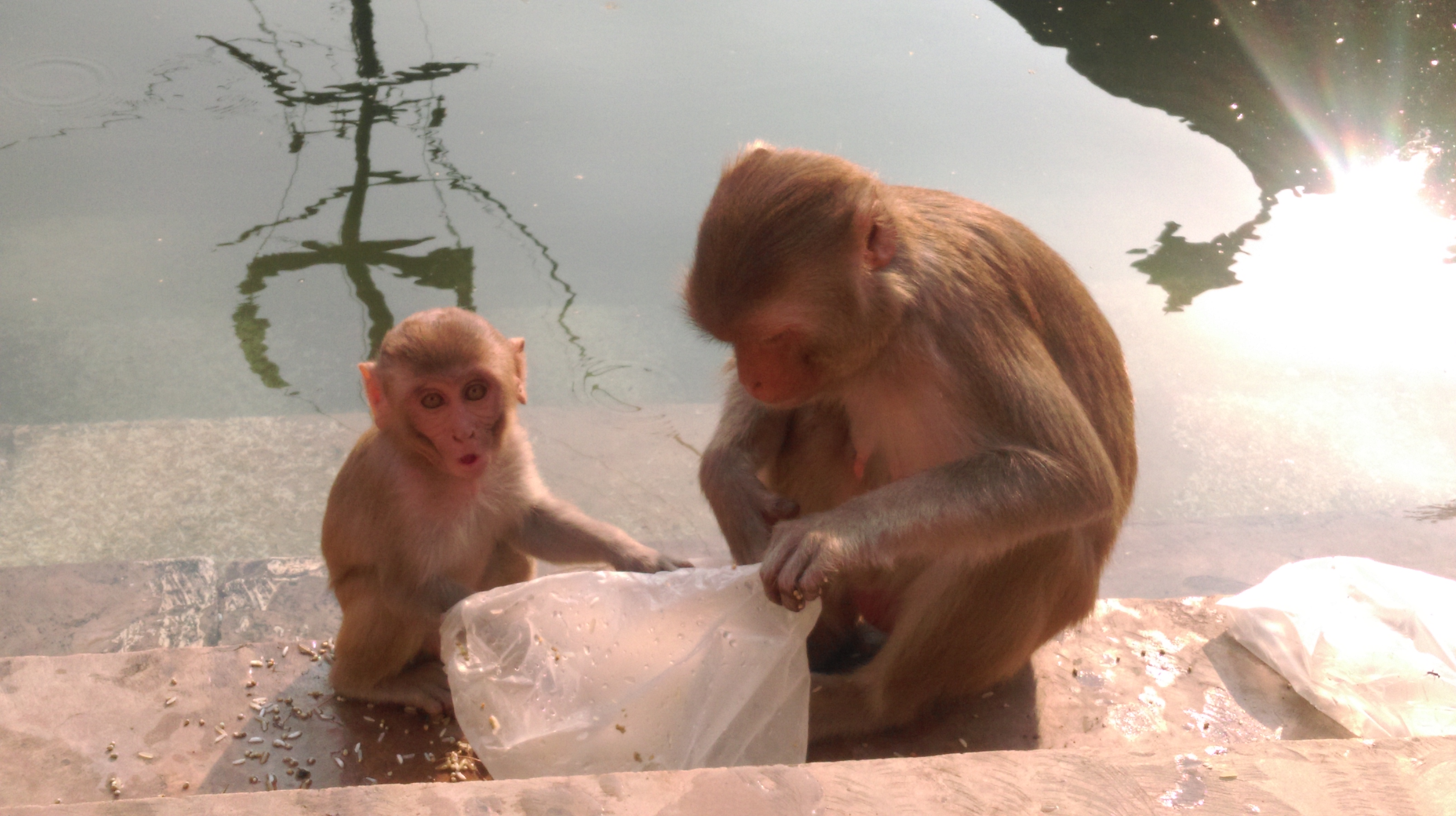 Empezamos la mañana alas 8:30. Moda Ram nos espera con el coche, preparado para llevarnos al templo de los monos. Hasta ahora habíamos visto bastantes monos pero no muy lejos de Jaipur, se encuentra su templo. Hemos visitado el lugar y es increíble. A parte de que el templo es enorme y de la gran presencia de monos, hemos podido ver como también habita gente (o al menos eso creemos). Hemos visto como los niños se bañaban en una especie de piscina y como la gente cogía agua… Hemos estado un buen rato observando el comportamiento de los monos, como comían, como se cuidaban entre sí (rascándose o sacándose bichos…) los monos más pequeños siempre están con sus madres y les protegen muchísimo.