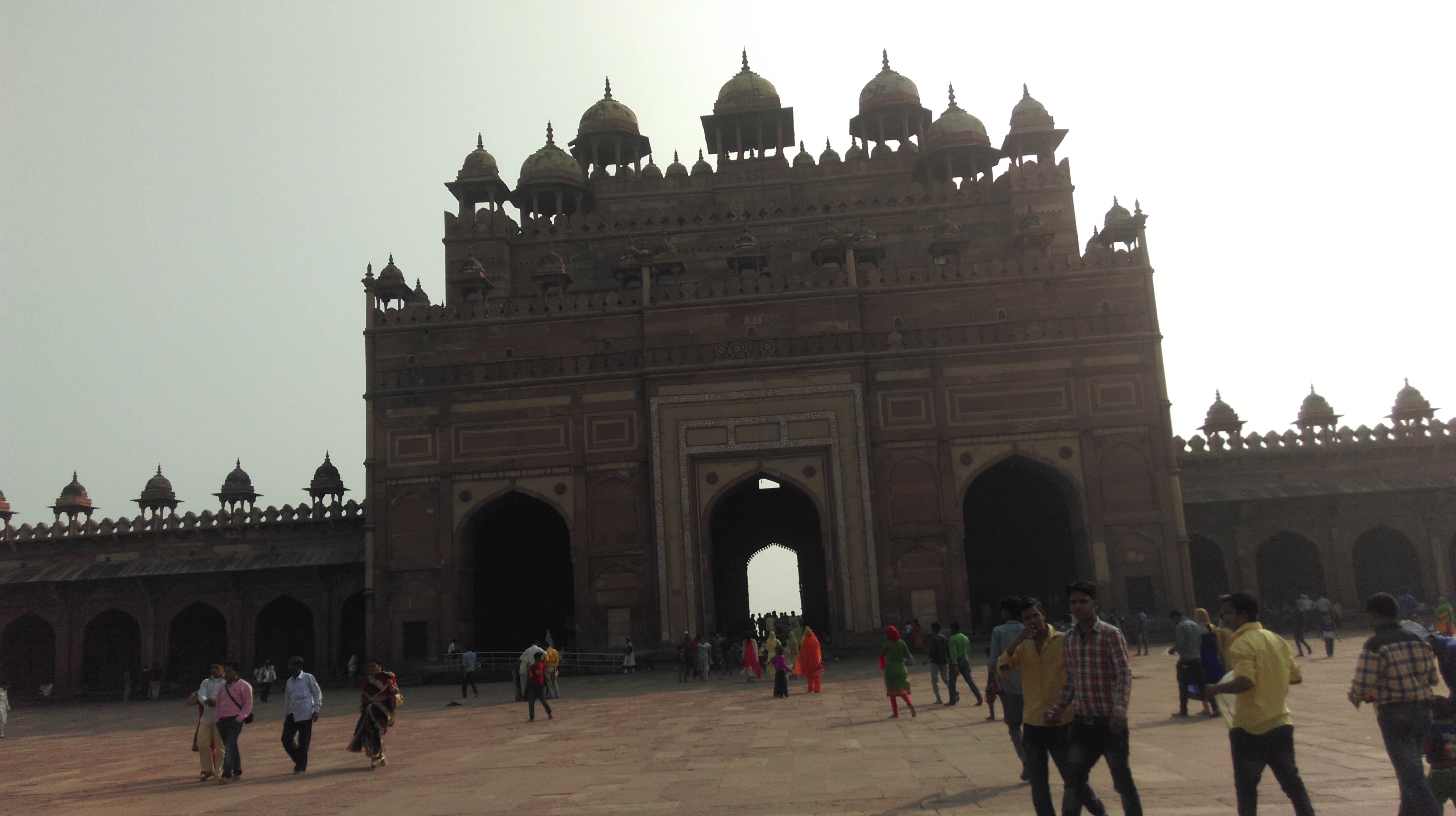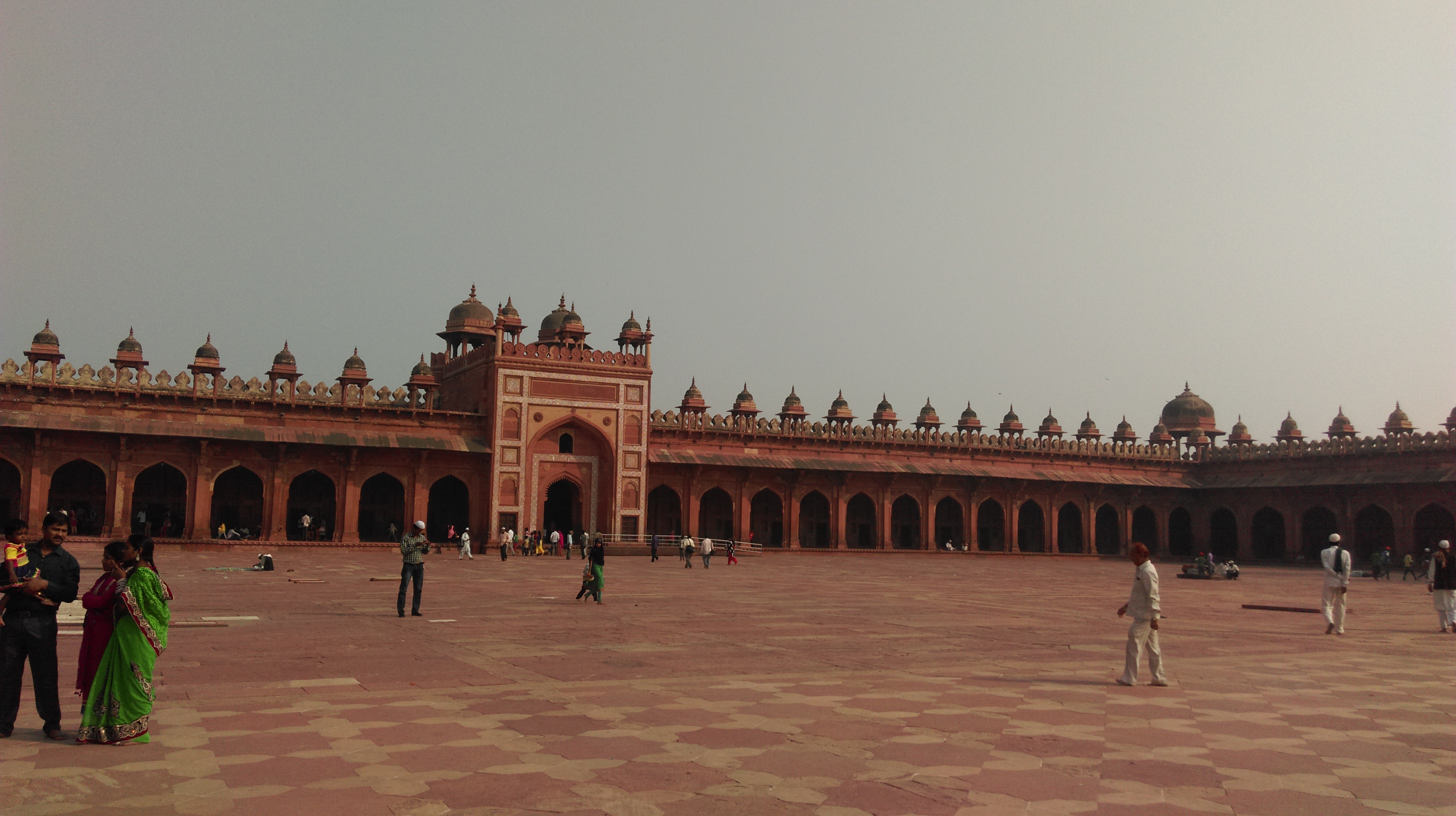 Seguimos en el coche dirección a Agra, antes paramos en en el fuerte Rojo y la Mezquita que están tocando a Agra. El fuerte, es bonito aunque nos cuesta apreciar las diferencias con otros fuertes. Este es mas amplio y luce un fantástico color rojizo.