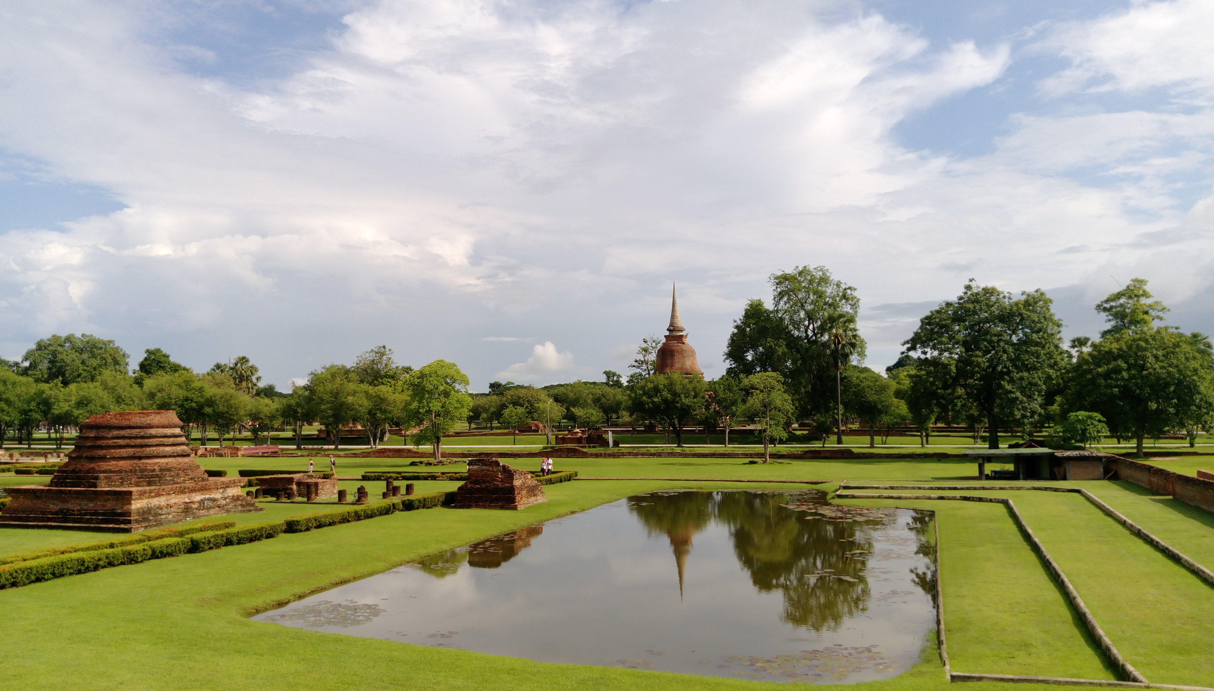 El parque está dividido en 3 zonas (100B/zona y persona), nosotras hemos visitado 2 de ellas. La central y más importante creemos que es una visita obligada si se viene a Tailandia. Las ruinas estan muy bien conservadas y el entorno es mágico: paisajes verdes, lagos, palmeras…