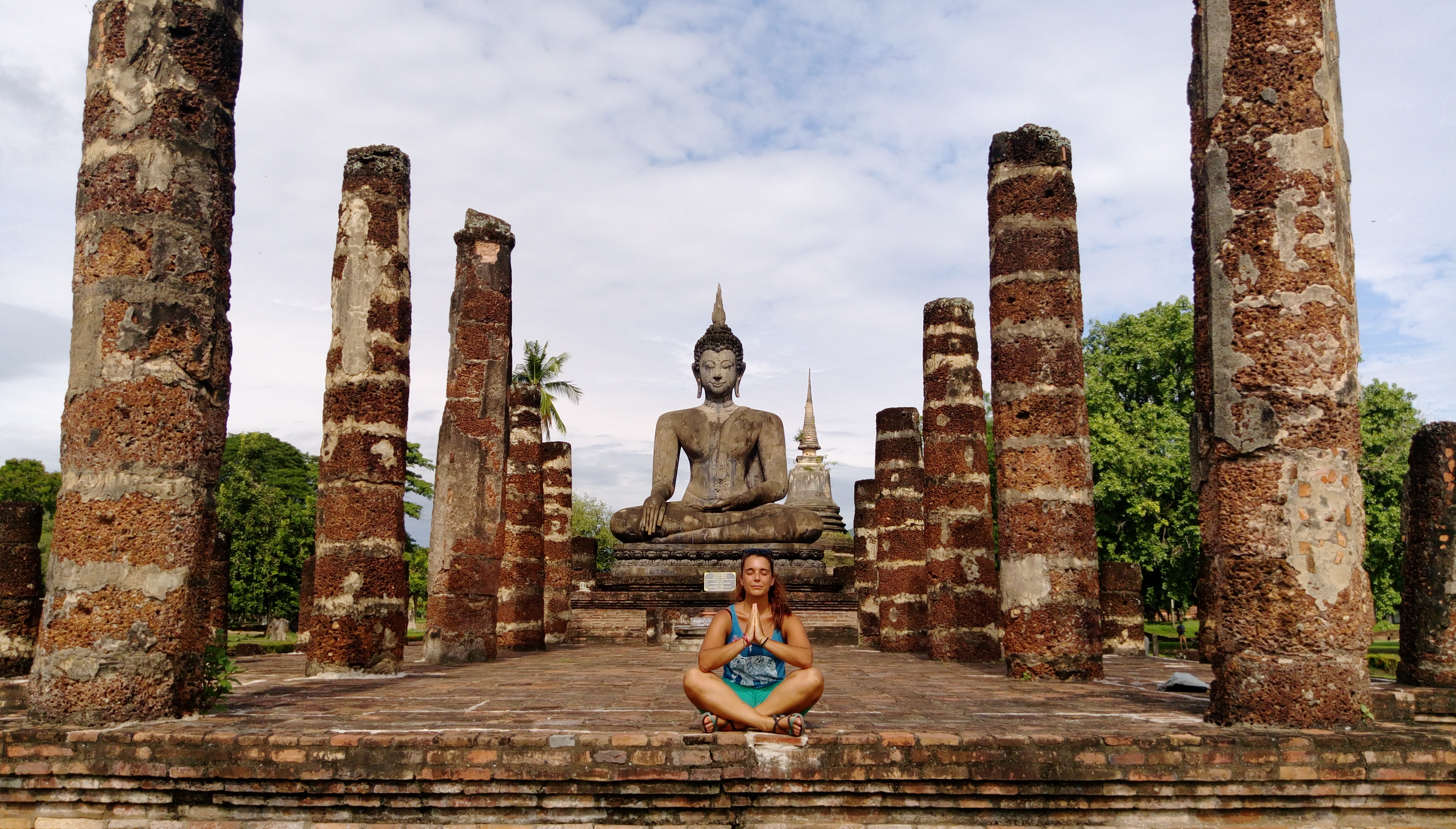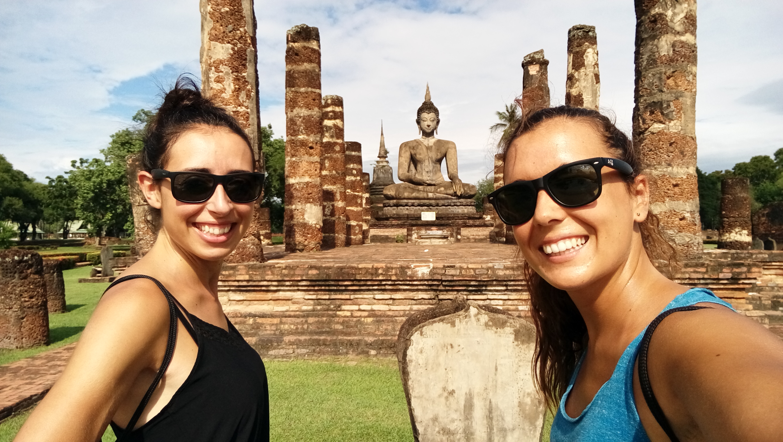 Al despertarnos hemos acabado de recoger rápidamente todo para hacer el check-out, después ha caído un american breakfast (nos ha durado nada en el plato!), hemos cogido la mañana con ganas y al acabar el desayuno hemos partido directas al Parque Nacional de Sukhothai, unos 20′ en moto.
