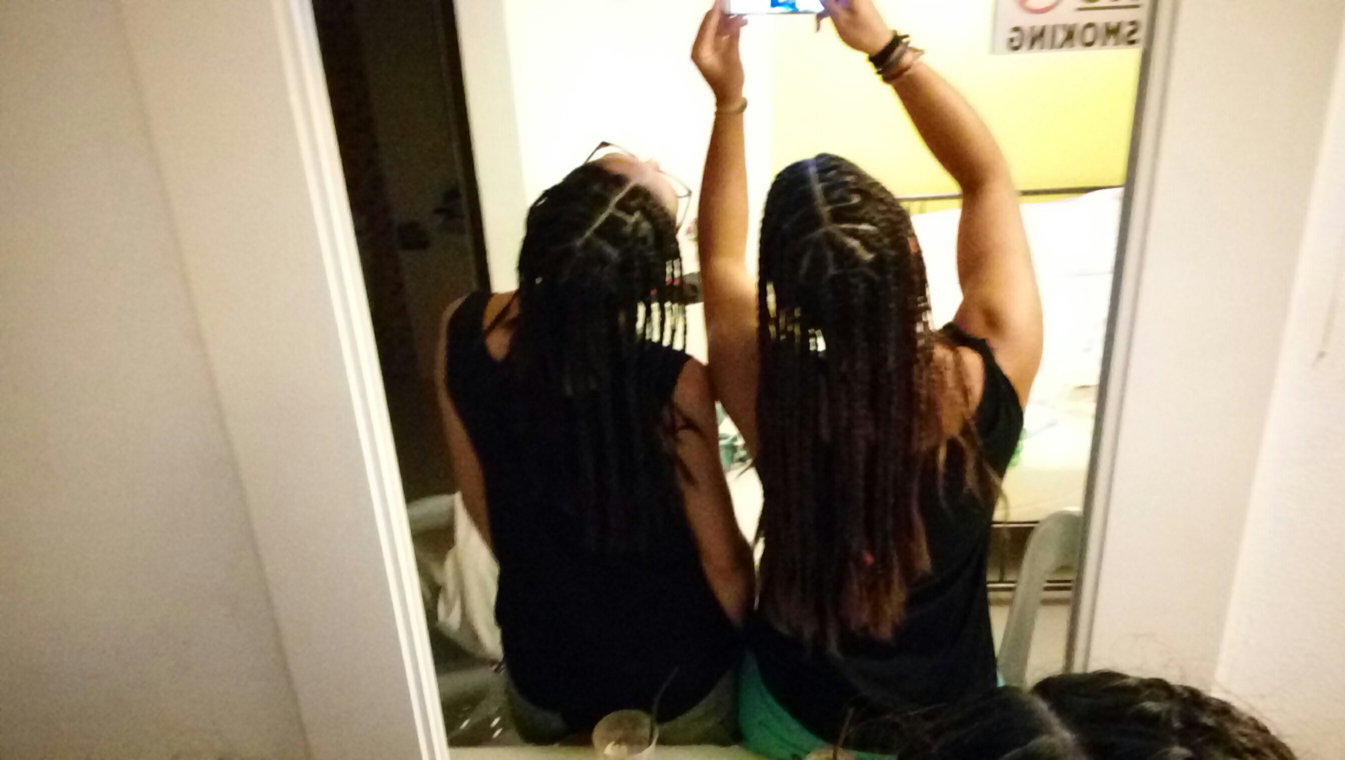 Después de varios días pensandolo y después de averiguar lo horrible que es peinarse por la gran humedad que hay y lo mal que me quedaba el pelo, he acabado convenciendo también a Cris para que se lo hiciera. Hemos tenido a tres chicas, durante 1 hora y poco remenandonos el pelo y haciendonos mil trencitas. Unas mujeres encantadoras.