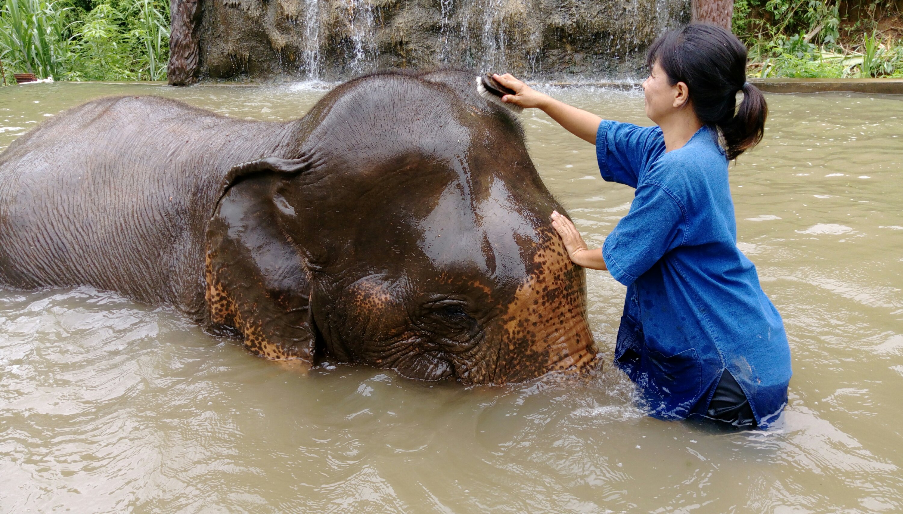 Después entre todos hemos preparado las medicinas y se las hemos dado (algunos no se las querían tomar), mientras tanto el grupo que sólo estaba de mañas se estaba bañando con algunos elefantes en una piscina.