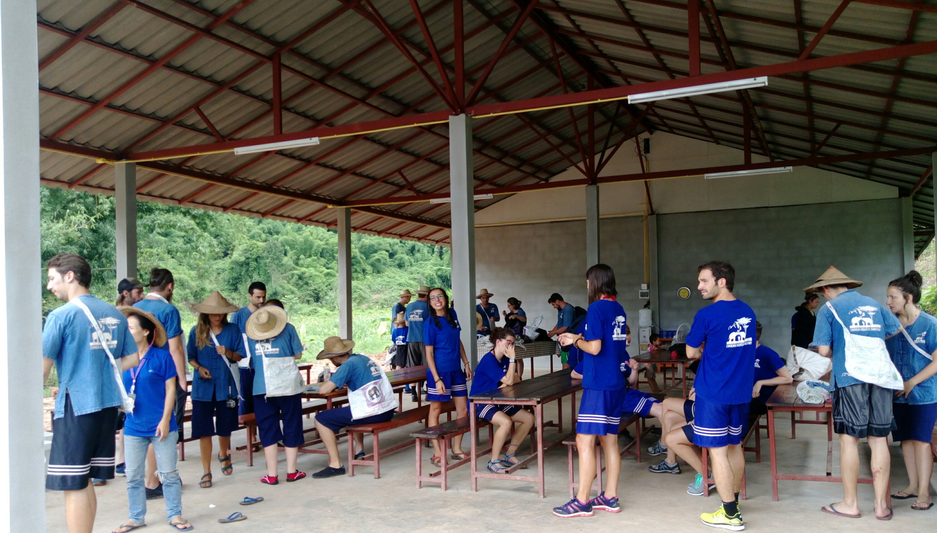 El recorrido hasta la selva era +1h. Al llegar nos hemos juntado con otros grupos y nos han dado ropa para cambiarnos y gorros.