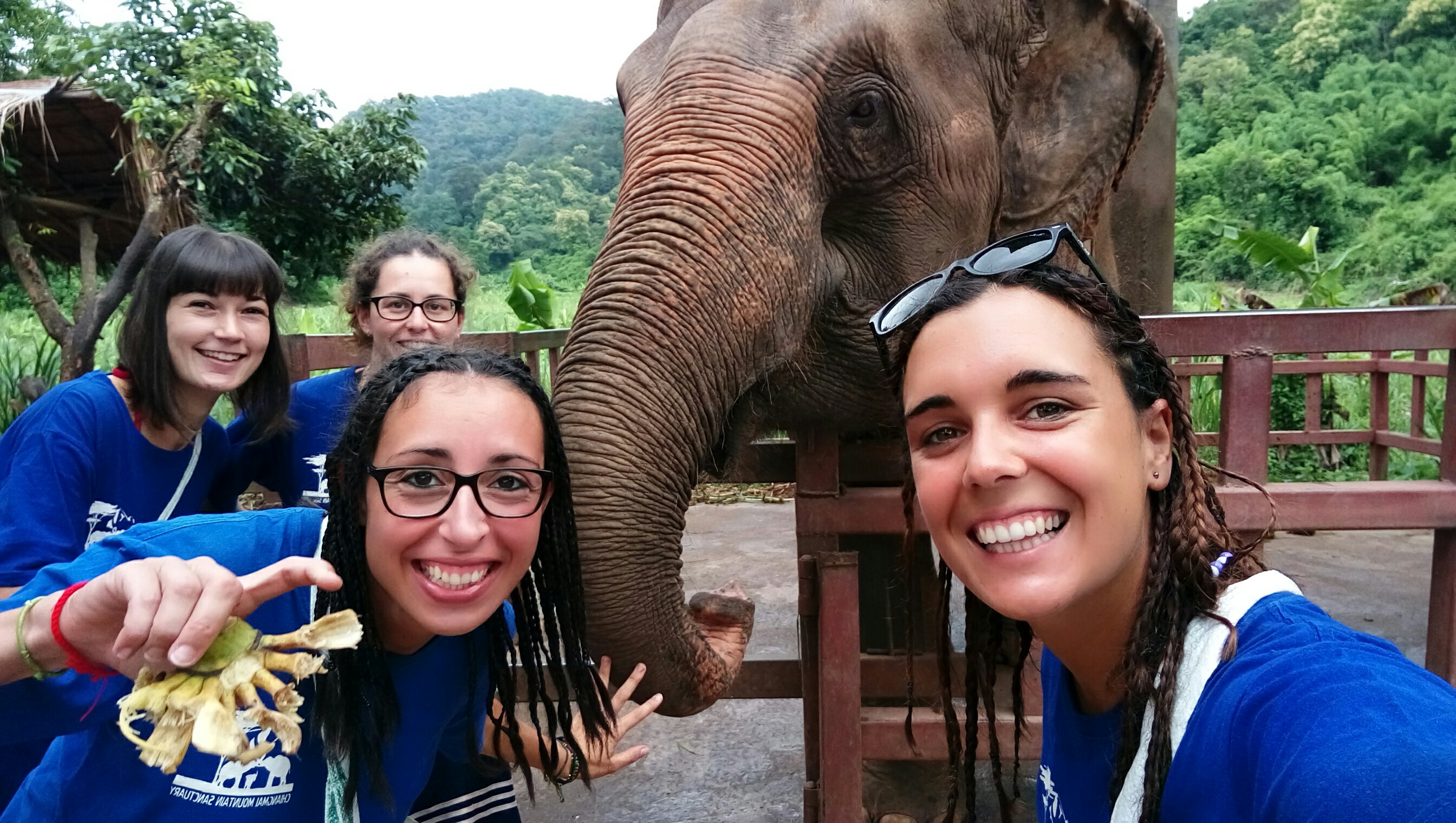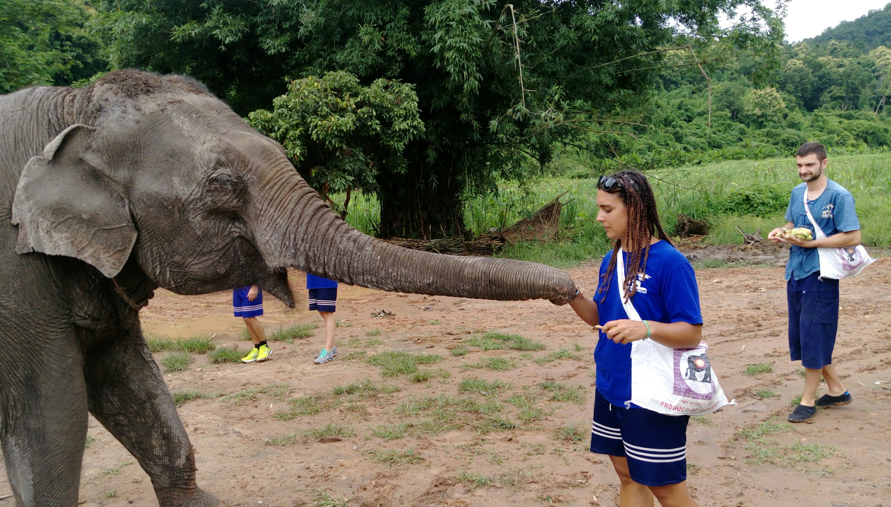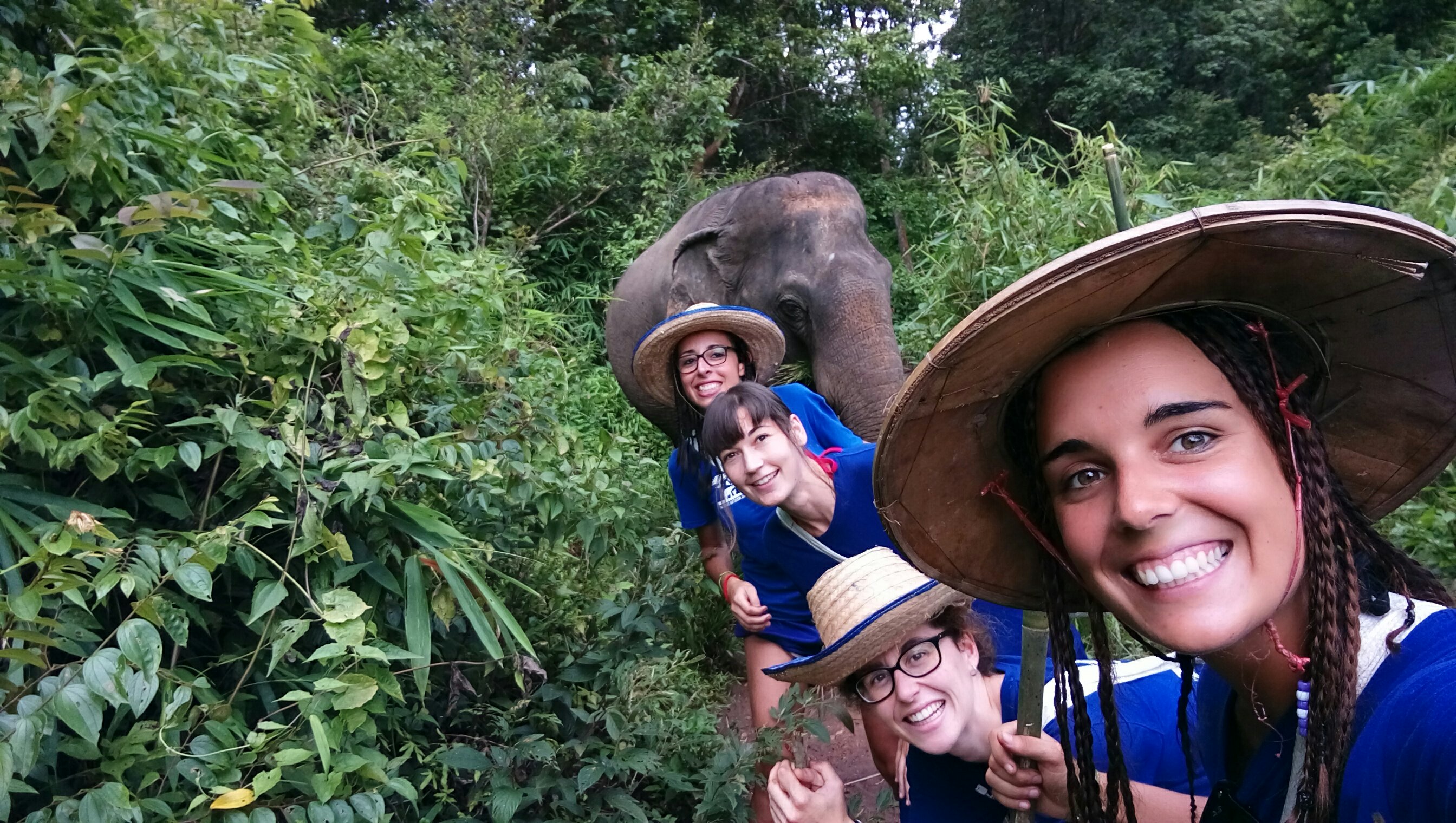 Para comer había buffet de pad thai, ensalada y piña. Cuando ya hemos acabado hemos ido de trekking con 6 elefantes (1 por pareja), ellos iban todo el tiempo a nuestro lado.