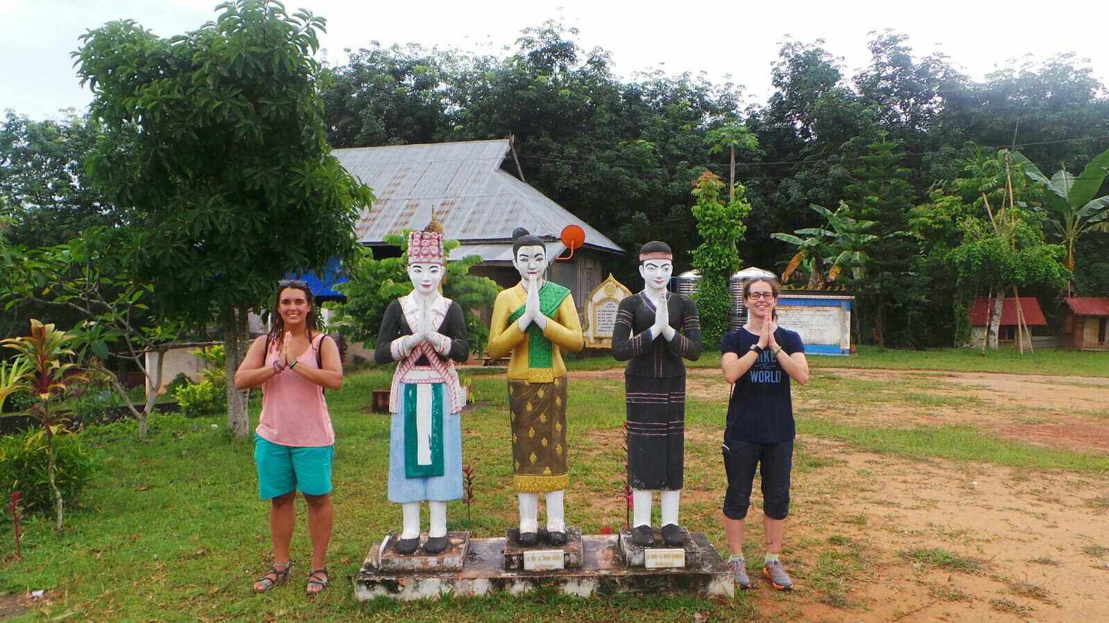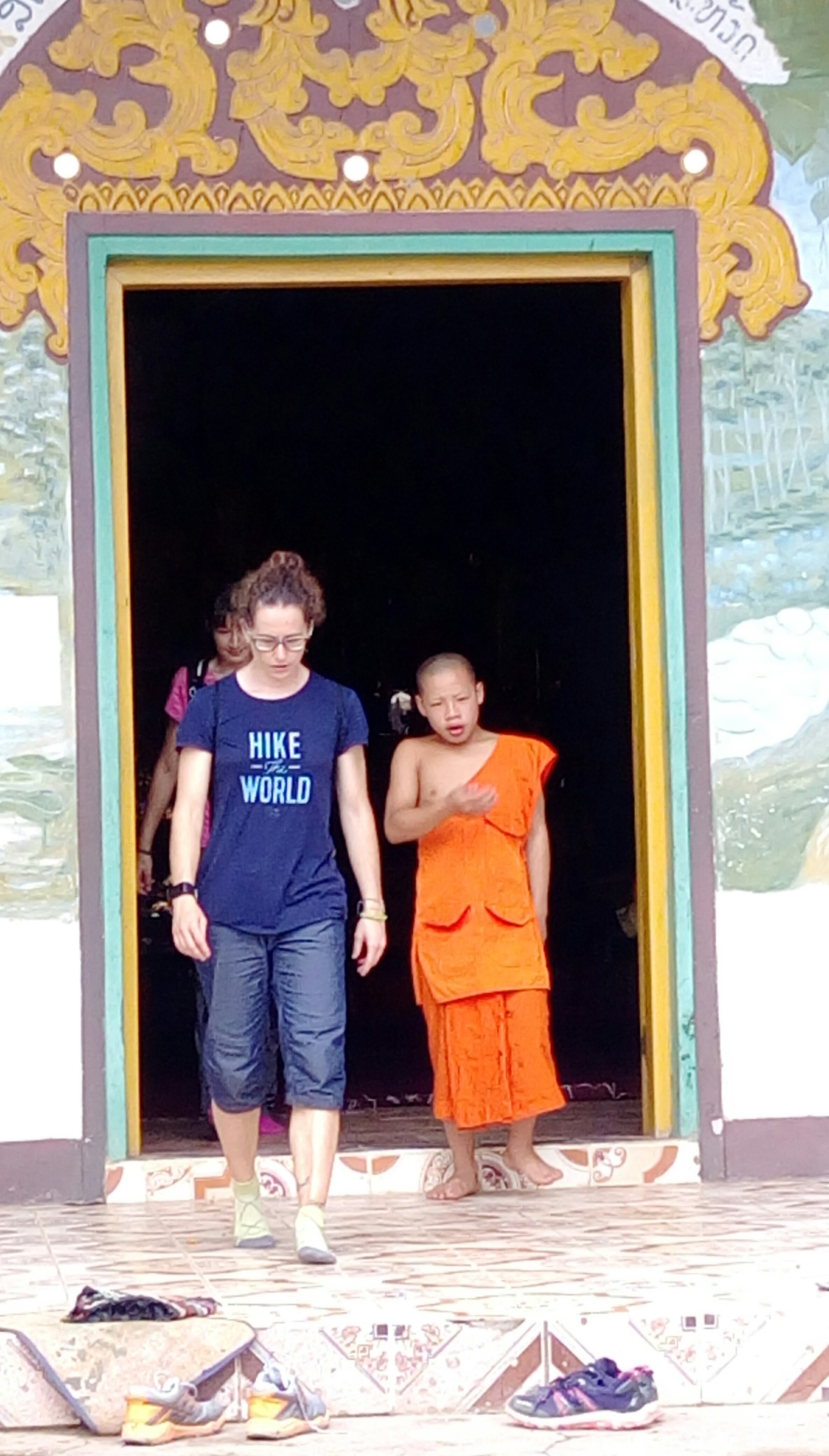 Hemos seguido unos cuantos km más hasta el That Poumpouk, otro pequeño templo, seguido del Wat Luang Khone, donde unos niños budas nos han enseñado el templo y la posición que hay que tomar dentro.