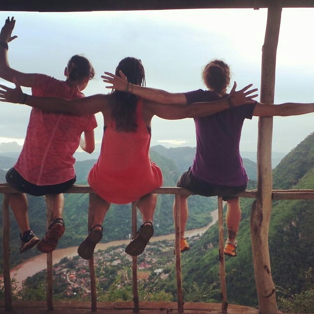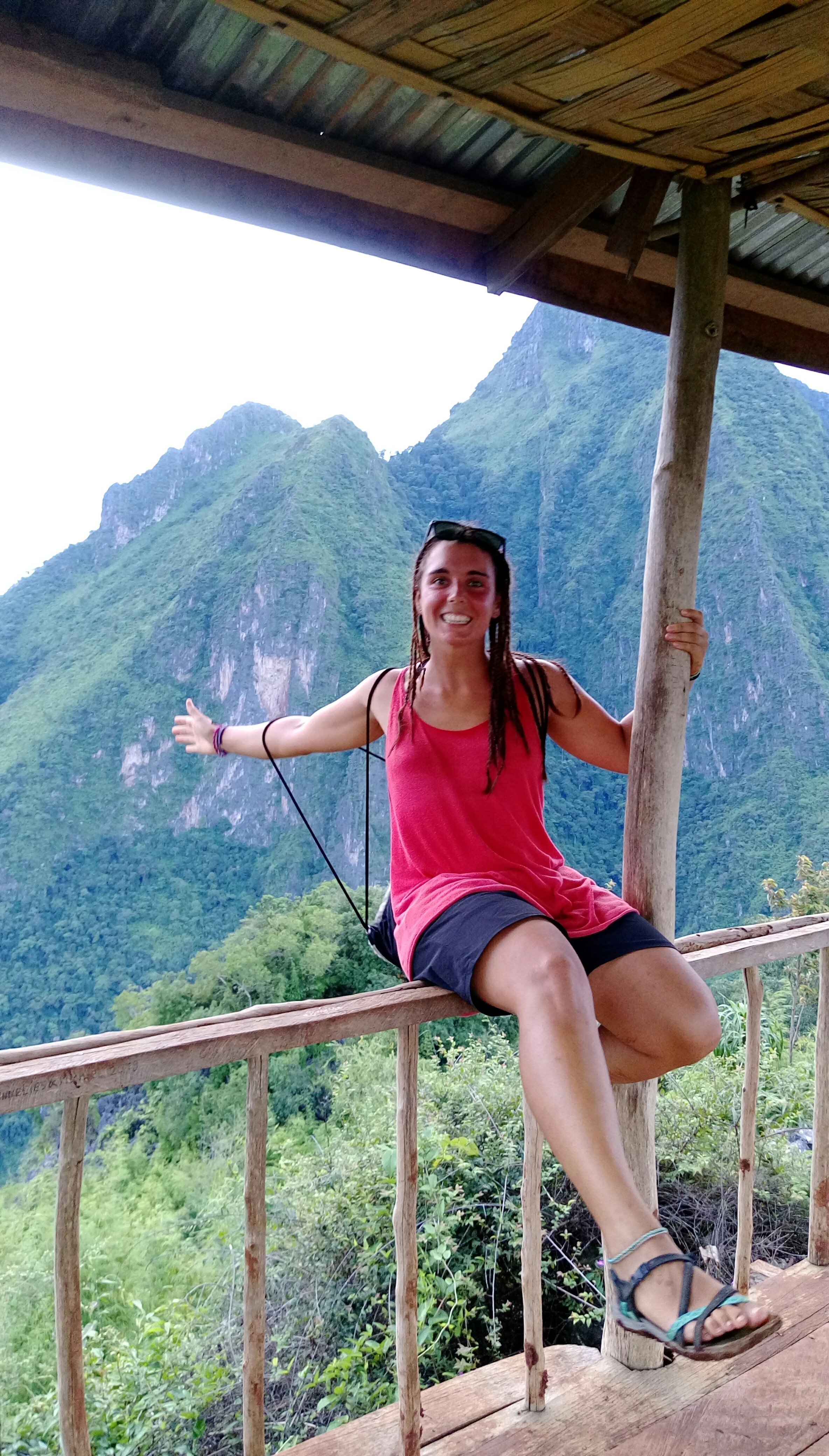 Son las 17:20 de la tarde cuando empezamos la ascensión a el mirador del pueblo. Nos cuesga 20.000 kips por persona (dos euros) y nos espera una larga y sudorosa subida hasta la cima.