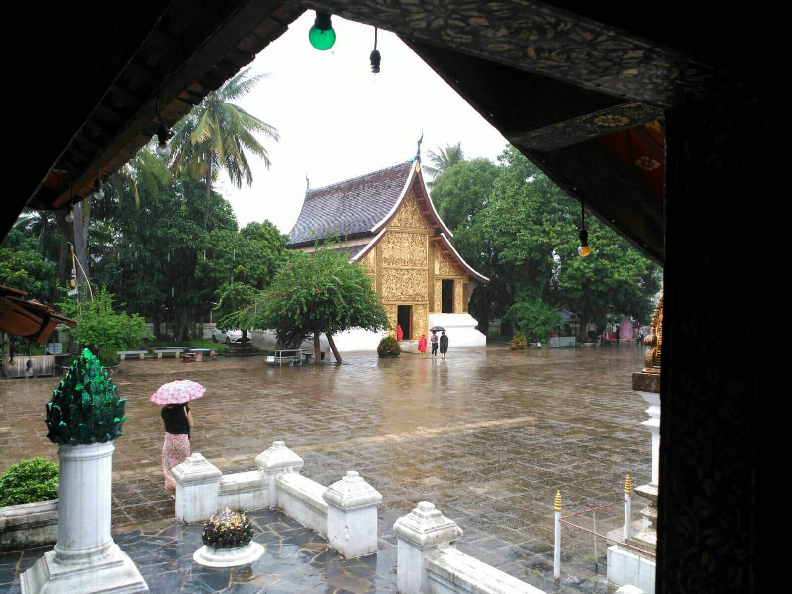 Seguidamente, hemos callejeado hasta llegar al famoso templo Xieng Thong, 2 euros para entrar en pleno diluvio universal, así que no lo hemos apreciado como se merecía.