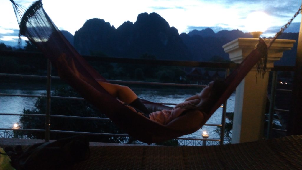 Finalmente llegamos a Vang vieng, caminamos hasta nuestro guest house y nos instalamos para salir rapidamente a inspeccionar la zona. Preguntamos a cerca de las actividades que se pueden hacer aquí, como las cuevas y el famoso tubbing.