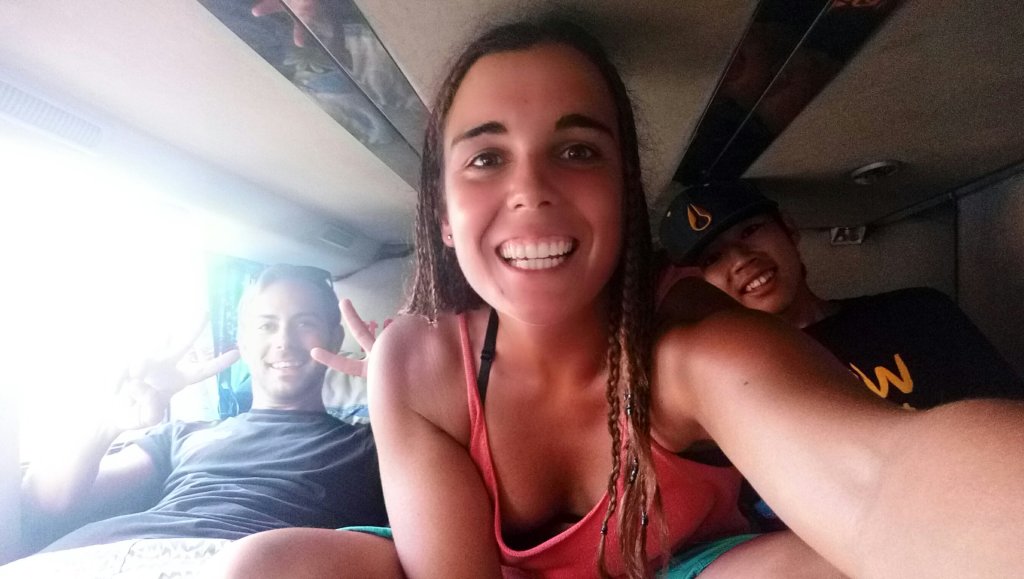 Nos llevan a la estación de bus y ahí esperamos a que nos den nuestro sitio. Voy con el japones y con Tom, mis compañeros de viaje por ahora. Nos esperan 24 horas juntos, estirados los tres al final del bus, bien juntos y al lado del lavabo. Parece que tendremos unas 24 horas largas.