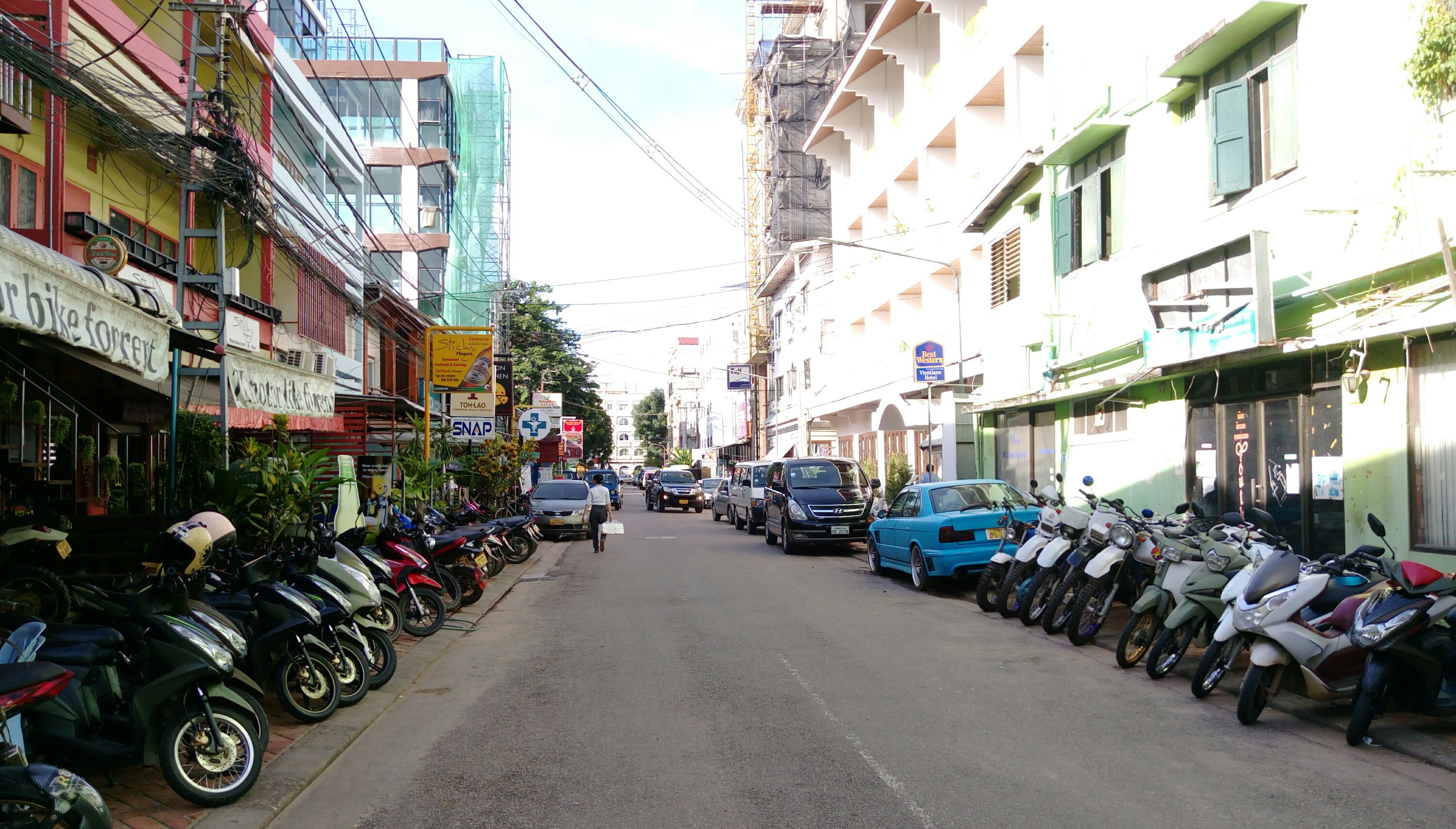 Vamos juntas en un bus local, durante 4 horas. Una vez en Vientián, dejamos mi mochila en la oficina y buscamos el guest house de Helena y Saskia.