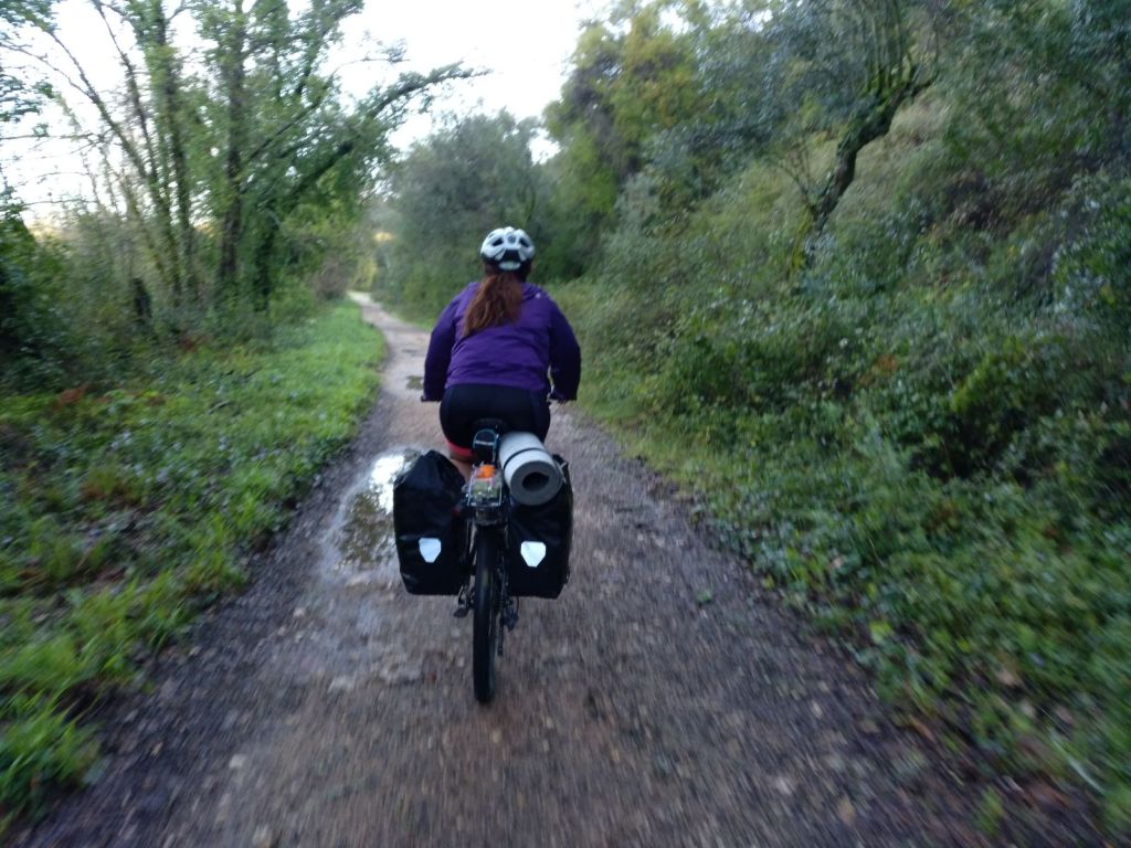 Cogemos un camino de tierra, con olivares, arenilla y piedritas… aunque lentas, avanzamos. Alguna cuesta se nos atraganta y tenemos que empujar (bien, sólo una).