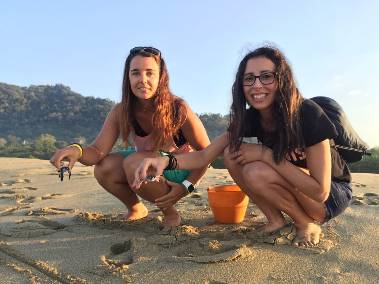 Habíamos quedado a las 6 de la mañana con nuestro guia. Nos esperaba para enseñarnos las tortuguitas que habían nacido anoche (después de aproximadamente dos meses) y nos dio tres para que las devolvieramos al lugar de donde venian, el mar.