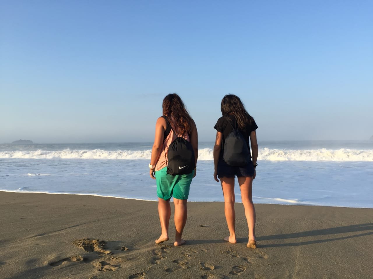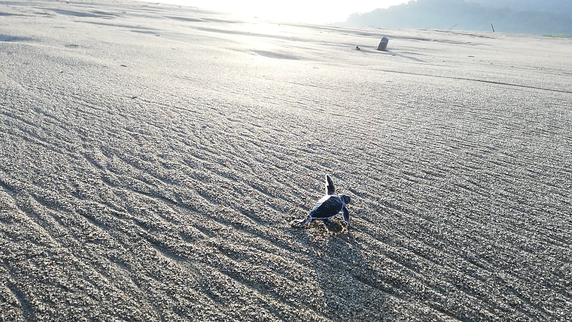 Caminamos 300 metros hasta llegar a la playa, hicimos una raya para simular la salida y dejamos que las tortuguitas se marcharan. Por instinto iban directas al mar. Había muchisimo oleaje, me cuesta imaginar que pudieran atravesar todas esas olas con la fuerza que tenia el mar. No obstante, el guía ya nos dijo que sólo iba a sobrevivir un 1% debido a los depredadores marinos.
