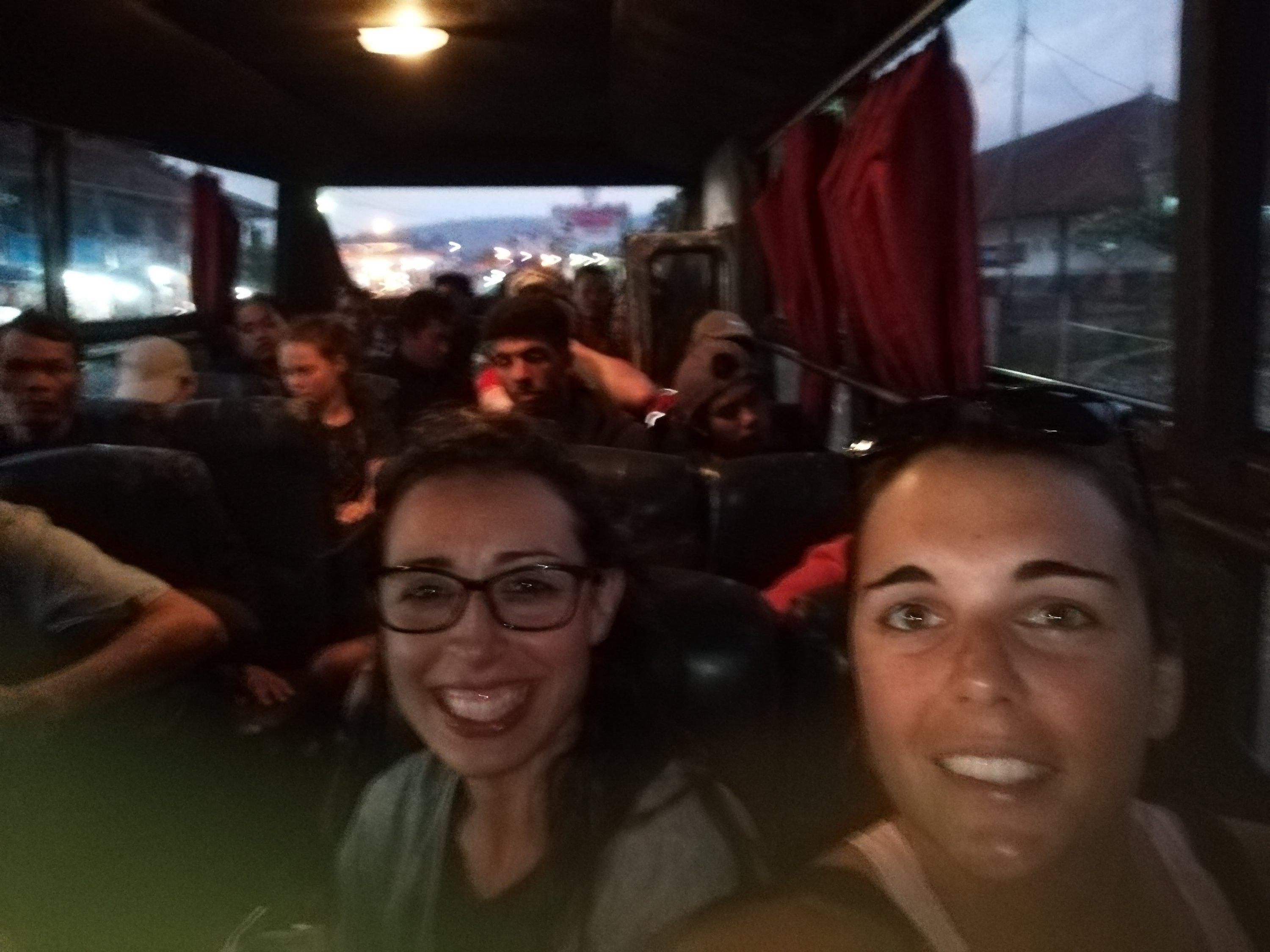 Ahí cogemos un bus local enano, antiguo e incomodo para recorrer 103 km durante 4 bonitas horas. Luego compartimos taxi hasta Ubud.
