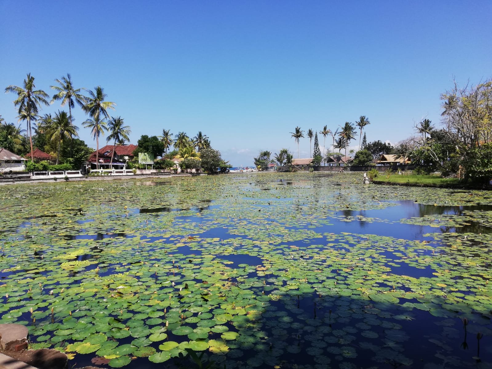 Damos media vuelta y paramos a comee cerca de un estanque muy bonito, tocando el mar.