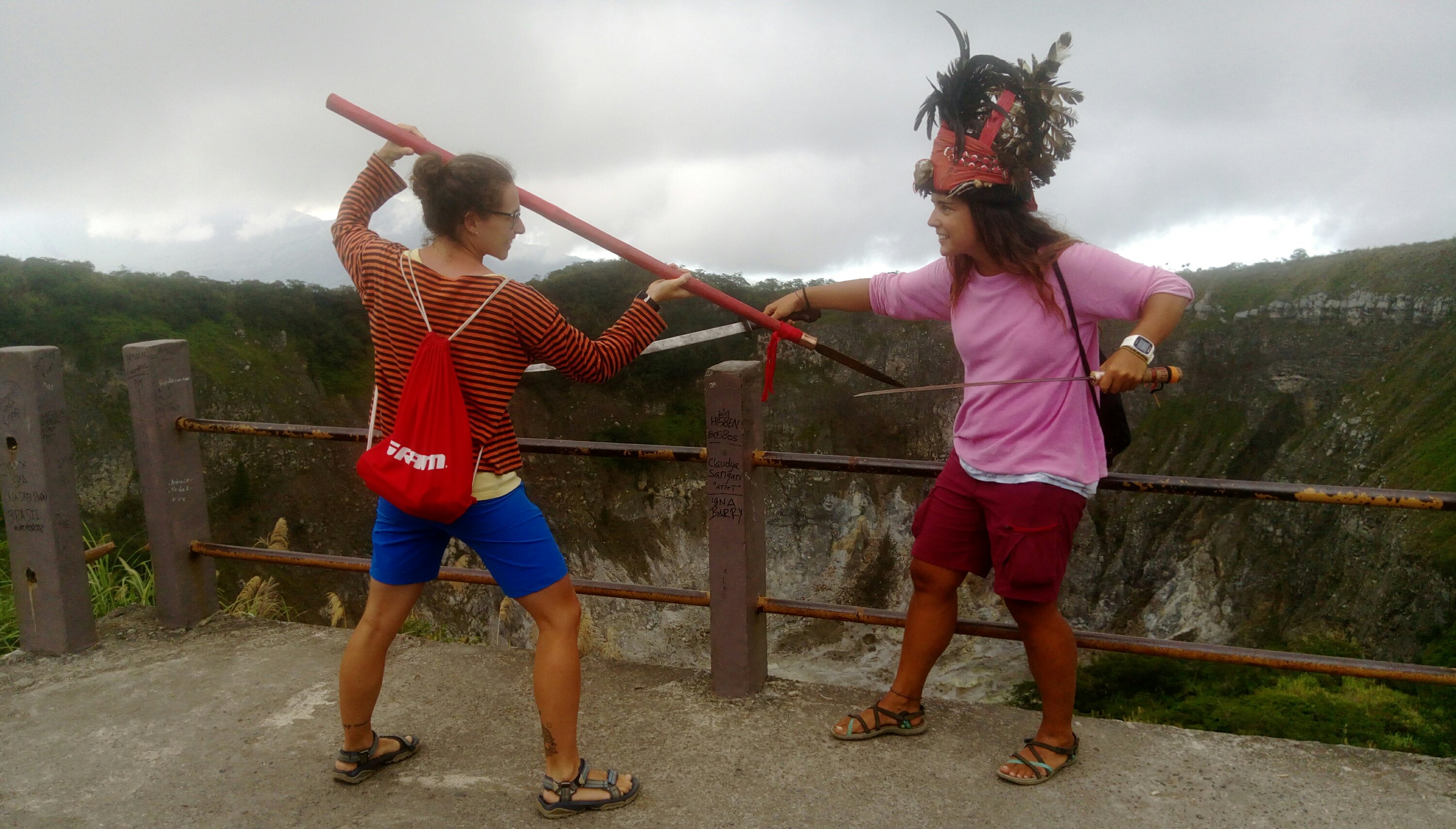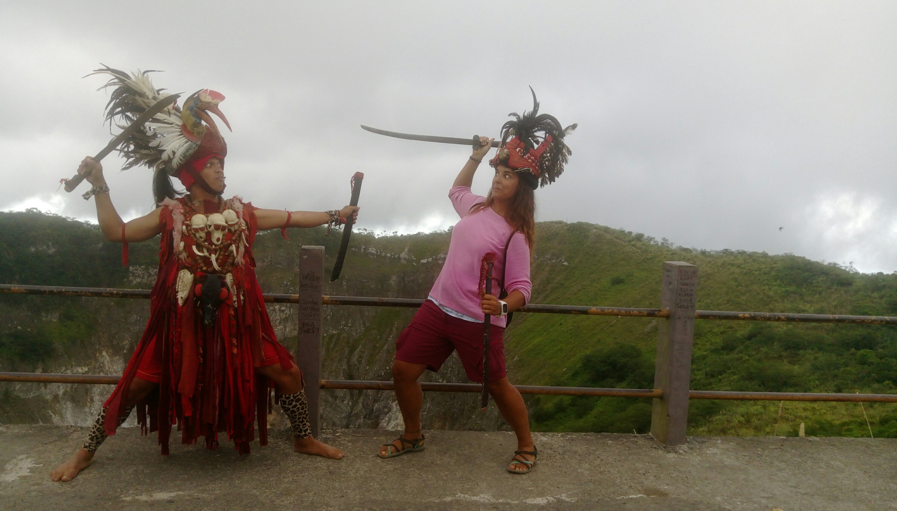 Hemos subido 154 escaleras y, una vez arriba, nos hemos encontrado un hombre vestido de Minahasa. Hemos aprovechado la ocasión para fotografiarnos!