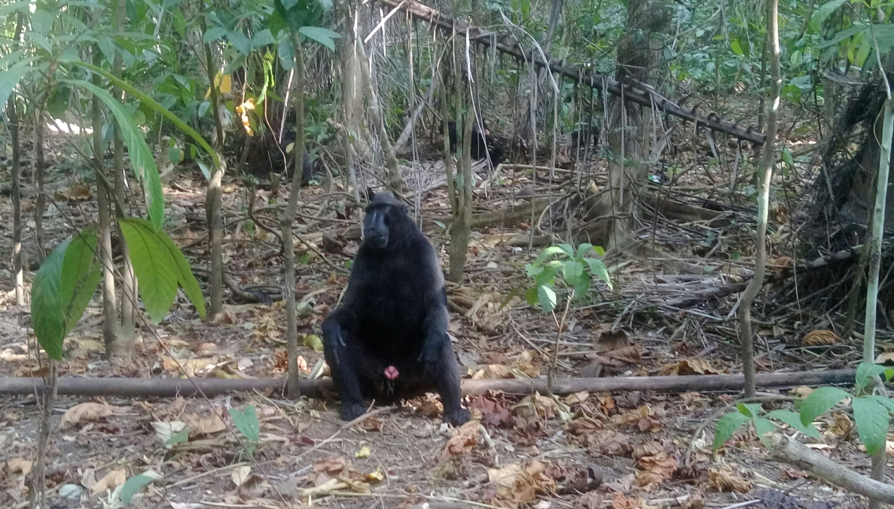 Lo primero que vemos son macacos, monos de culo pelado. Pasean a sus anchas por el bosque. Abriendo cocos y correteando por la zona.