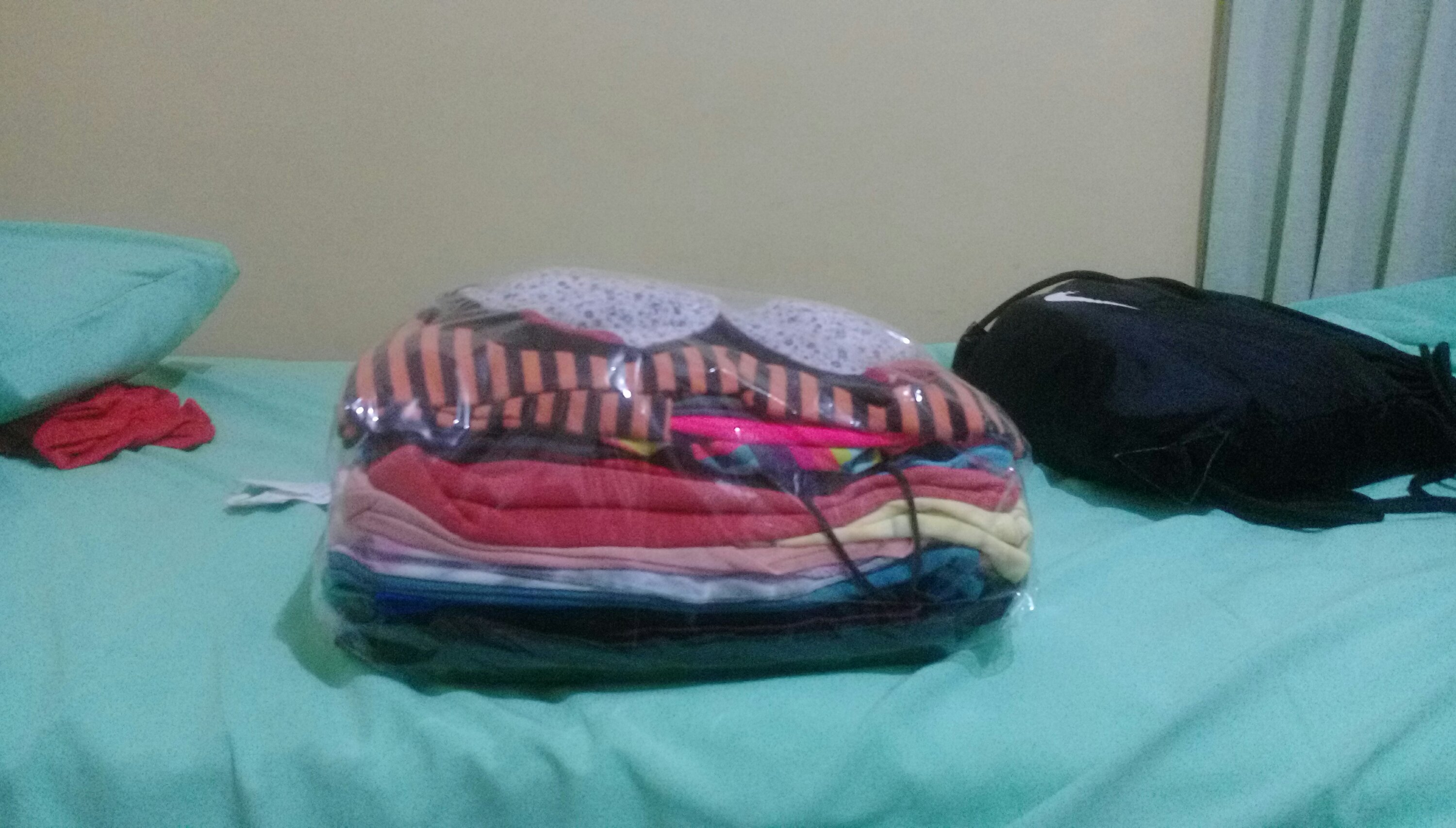 Vamos a buscar la ropa que habíamos dejado en la lavanderia. Por 1,5 euros nos lavan, secan, planchan y doblan 3 kg de ropa.