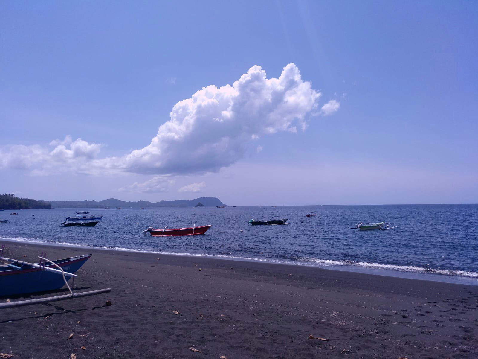 Llegamos al parrque para preguntar horarios y precios. Habíamos leído que la mejor hora es a media tarde (15:00h), corroboramos la información y nos acercamos a una playa de arena negra y solitaria.