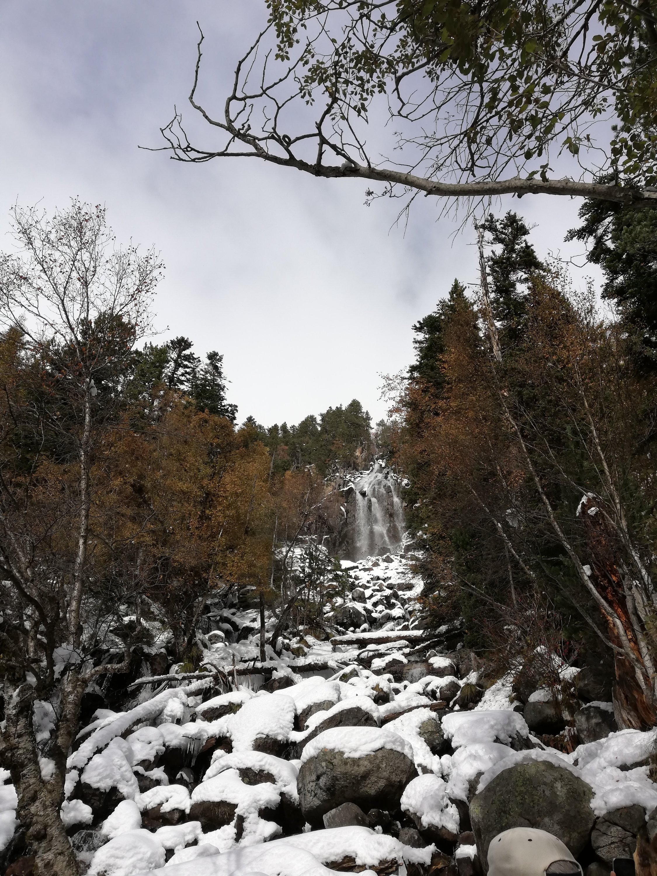 Empieza a aparecer un poco de nieve y en escasos metros, todo el camino se convierte en un manto blanco. Nos queda aún, una hora para llegar arriba.