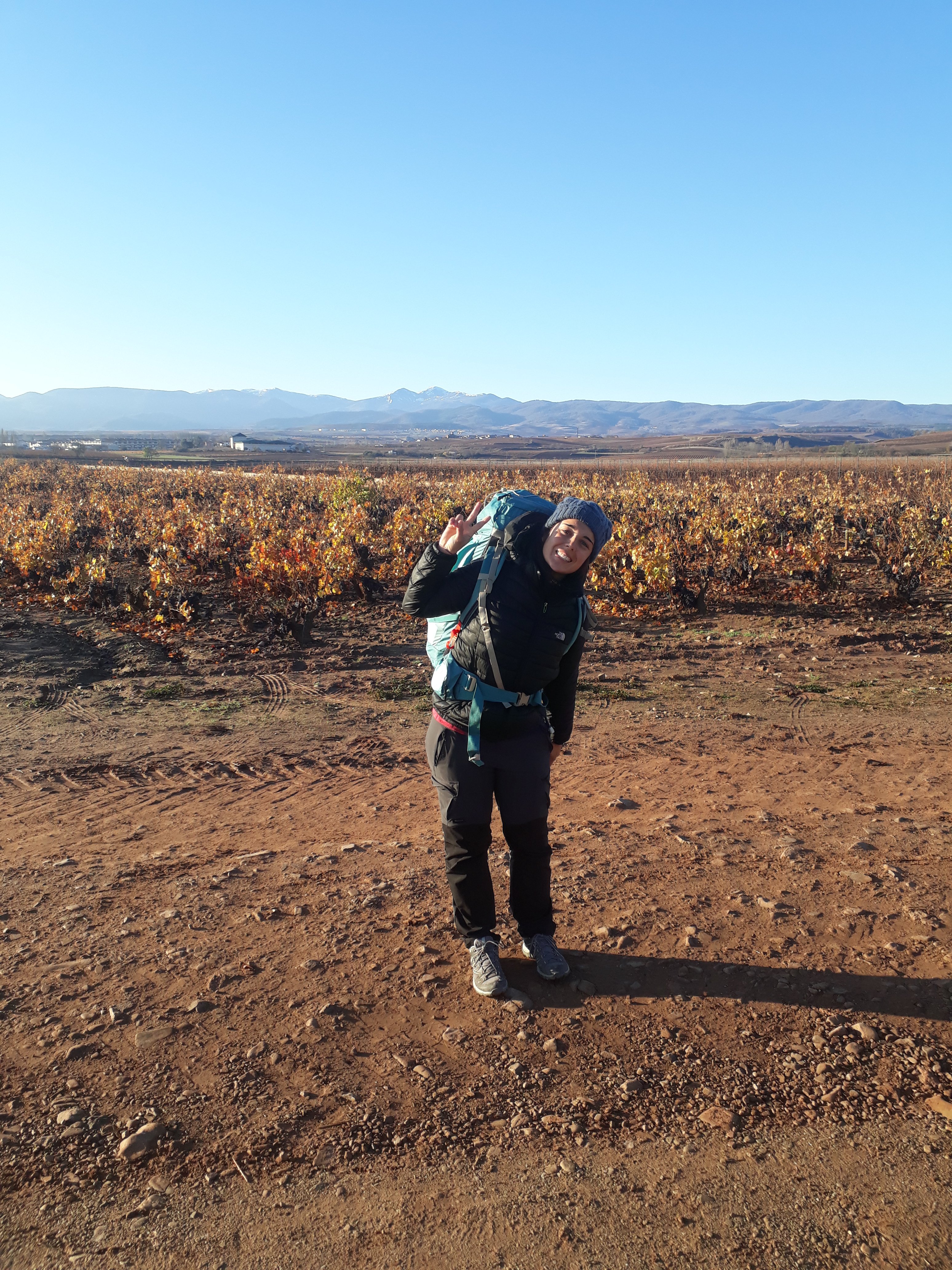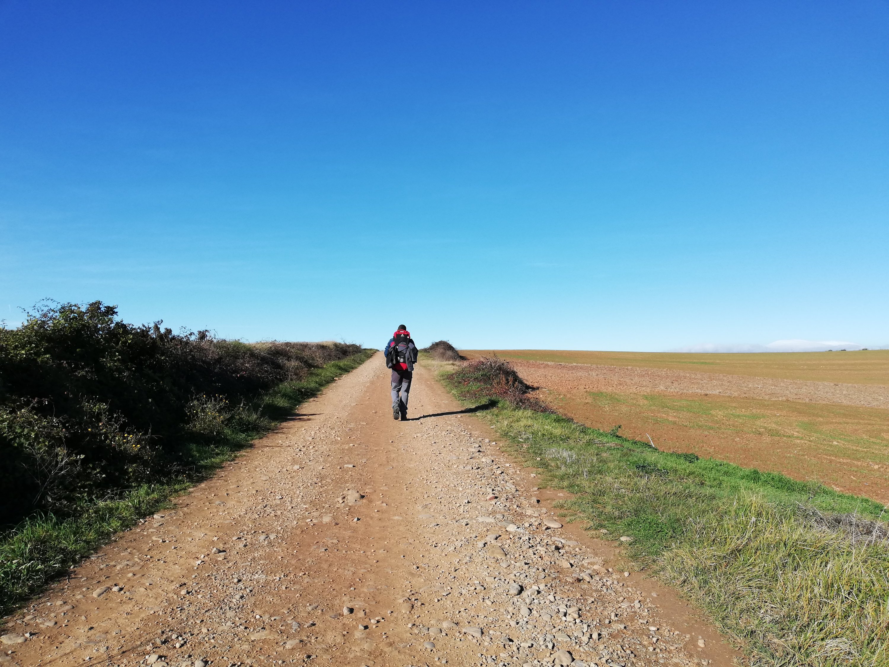 Aún es de noche, el frío todavía está presente y no hay ningún bar abierto cerca para desayunar. No tenemos otra alternativa que caminar hasta el primer pueblo, a unos 6 kilómetros de Najera.