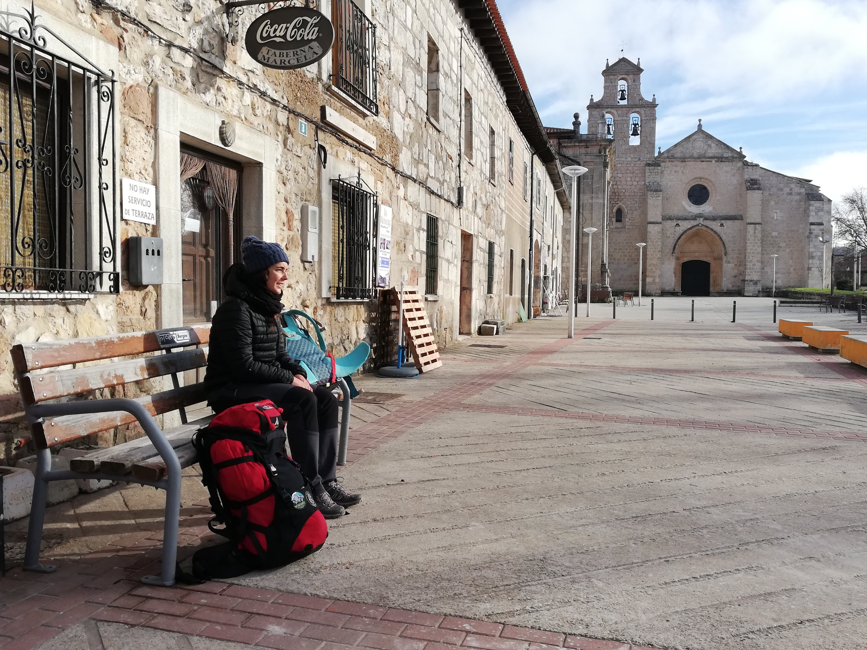 Llegamos a San Juan de Ortega, pero todo está cerrado. Pequeño descanso para cambiar de calzado y seguir 3,6km más.