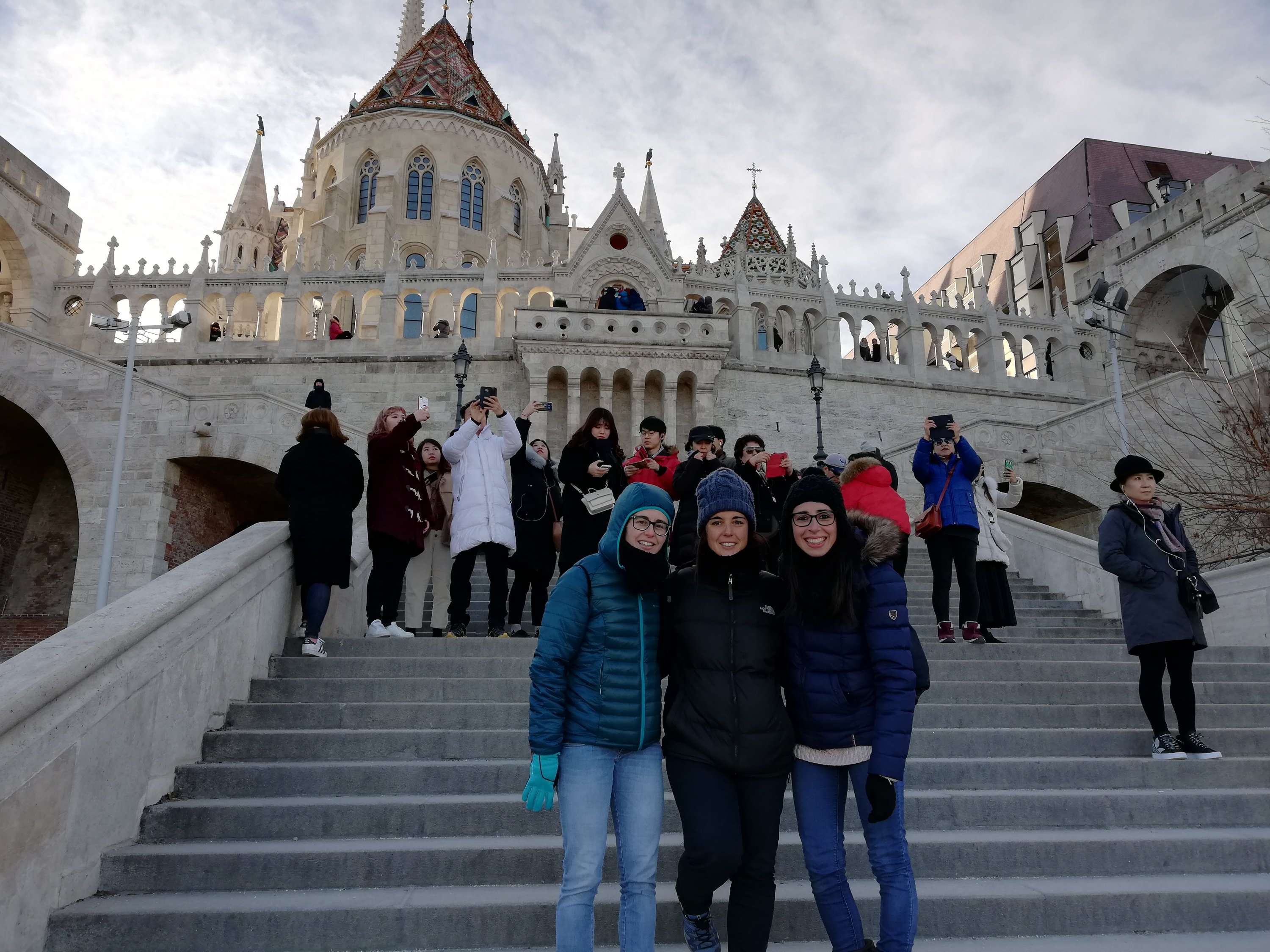 Llegamos arriba justo en el cambio de guardia, son las 12 en punto. De ahí nos dirigimos a la iglesia de sant Matias y el bastión de los pescadores. En una muy bonita y turística. La iglesia por fuera tiene los azulejos típicos húngaros y desde el bastión de los pescadores podemos observar toda la ciudad de Pest.