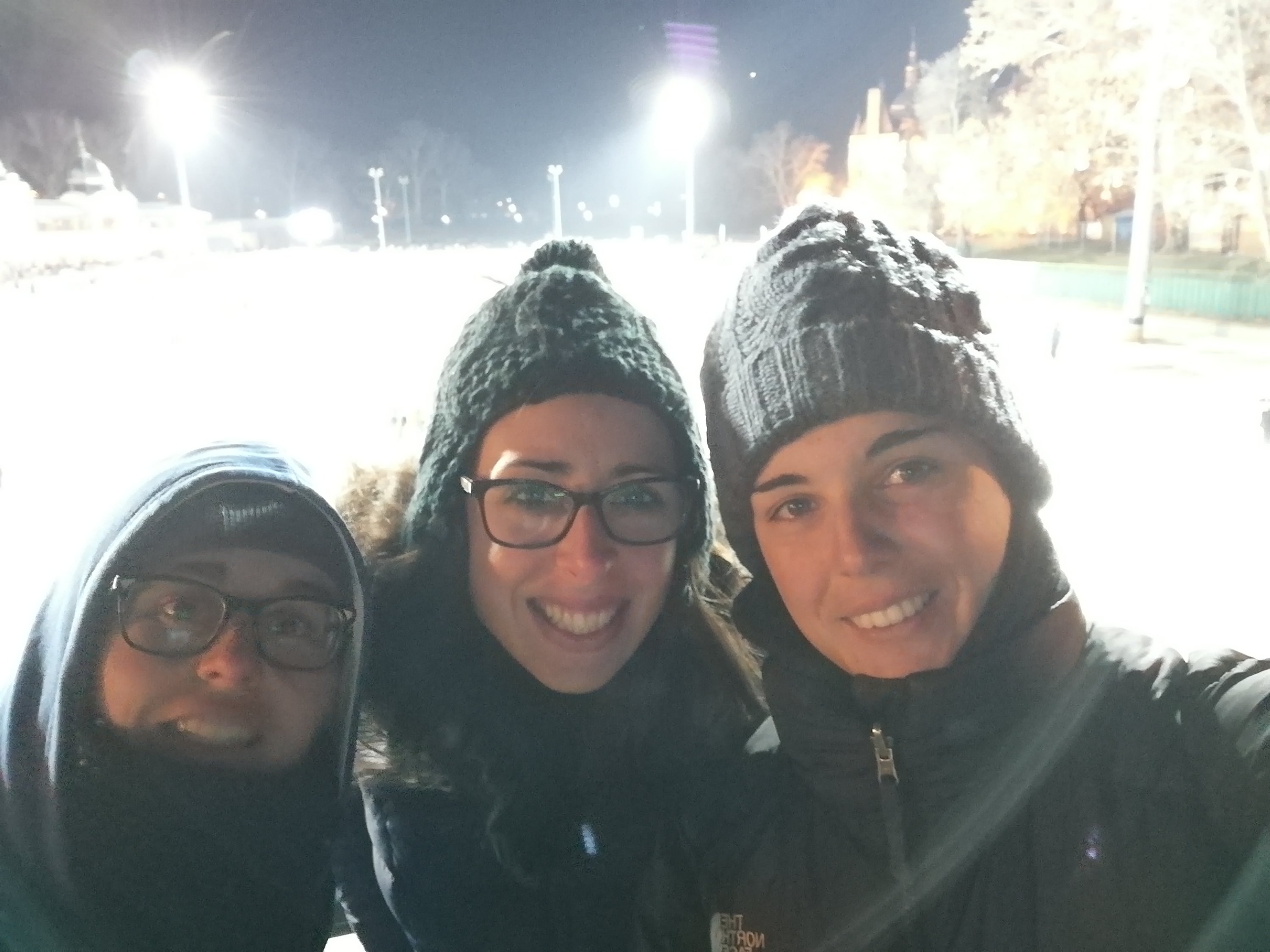 Salimos del spa y observamos que muy cerca hay una pista de patinaje sobre hielo. 11 euros cuesta acceder y alquilar el material.
