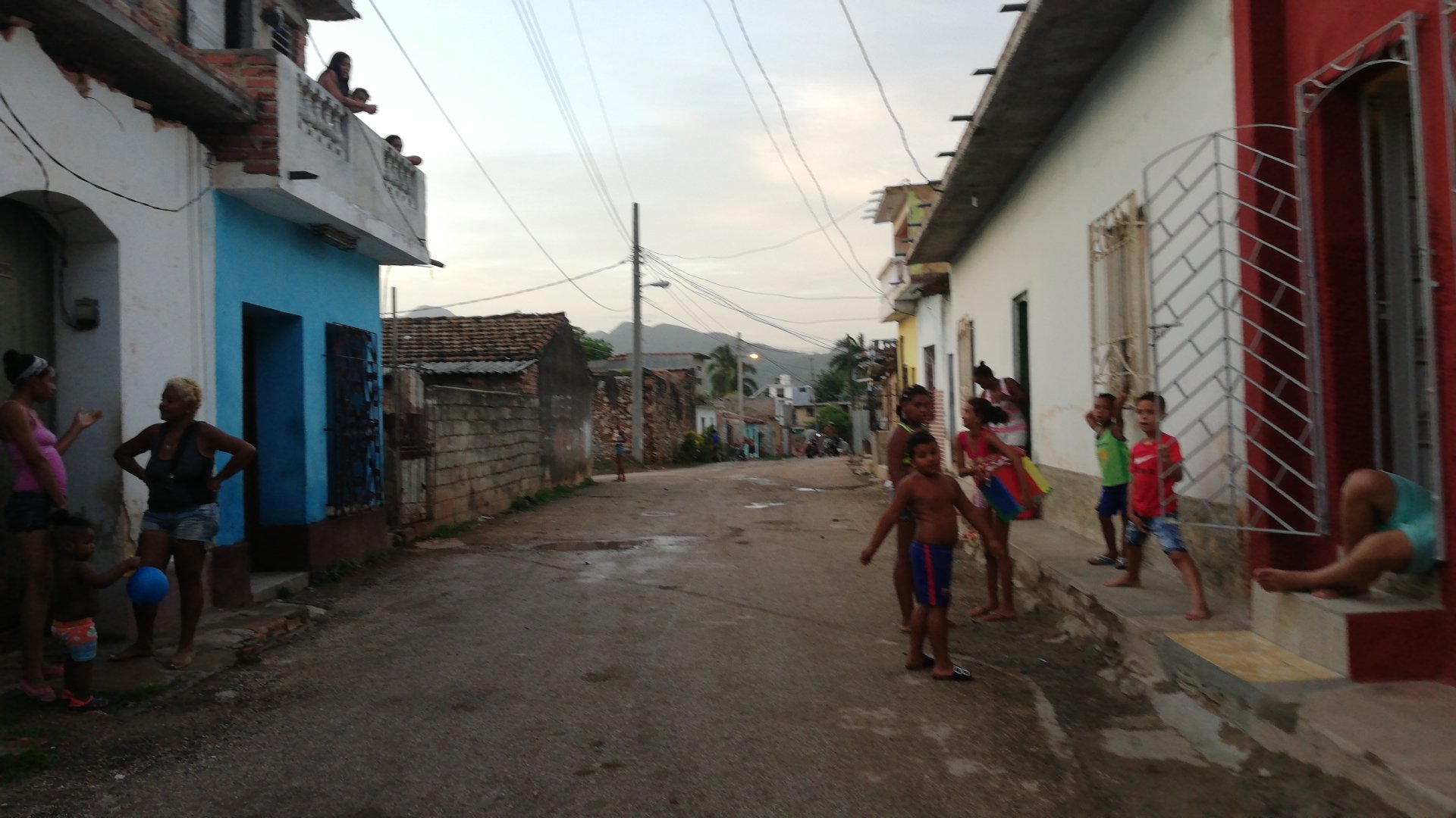 Hace muchisima calor, salimos a pasear pero acabamos tomando un helado. No se puede estar por la calle. Salimos de nuevo y al cabo de poco oímos unos truenos, enseguida se pone a diluviar (30 minutos) escusa perfecta para tomarnos un mohito mientras amaina…Salimos y decidimos seguir una ruta por las calles más conocidas de Trinidad y conocer la auténtica Cuba, con sus calles adoquinadas, sus casita bajas, la gente en las terrazas o en la calle y los niños jugando descalzos por toda la vía.