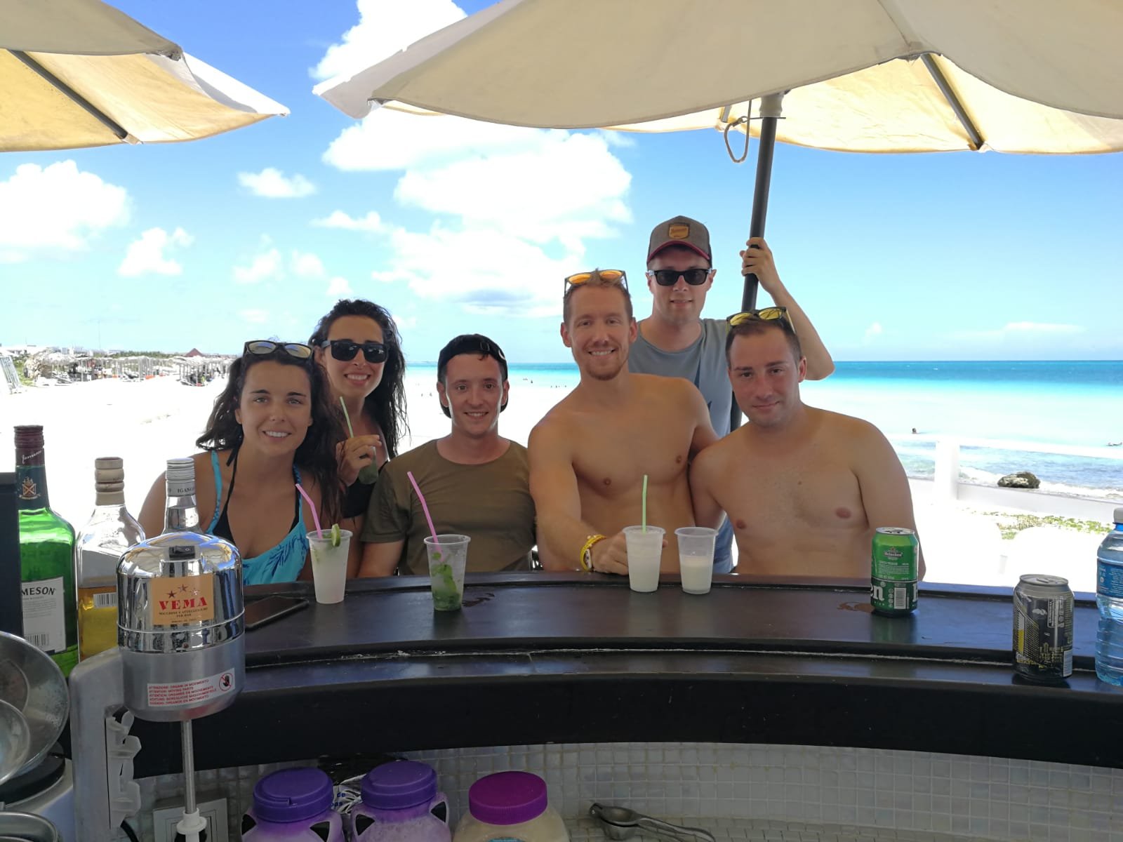 Solo llegar, nos ponemos crema y directos al agua. El mar estaba bien, hemos estado hablando y jugando un rato hasta que hemos salido a secarnos y a tomarnos el cóctel.