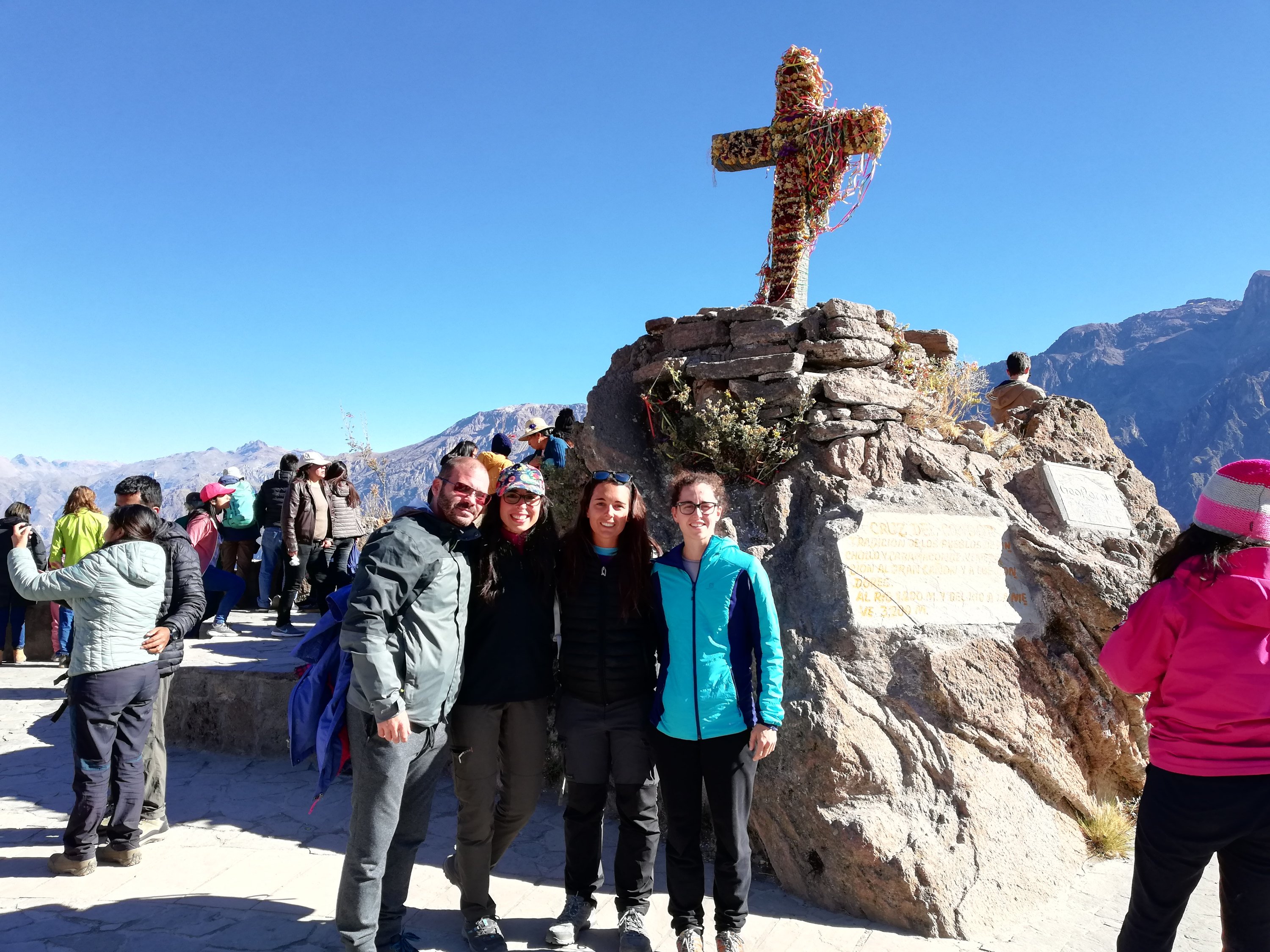 A eso de las 8.30h de la mañana llegamos al Mirador Cruz del Cóndor donde estamos 30 minutos esperando que aparezcan los cóndores, una aves gigantescas de casi 3 metro de largo cuando despliegan sus enormes alas. El guía que está con nosotros en el bus nos explica que estos animales no mueven sus alas de arriba abajo, sinó que a través de corrientes de aire se dejan caer y volar. Se alimentan de animales muertos pero no los cazan porque no tienen garras, sino que pueden ayudarles al «suicidio» pues son aves tan grandes que les empujan en un precipicio para que se mueran y luego comérselos. Jejeje…