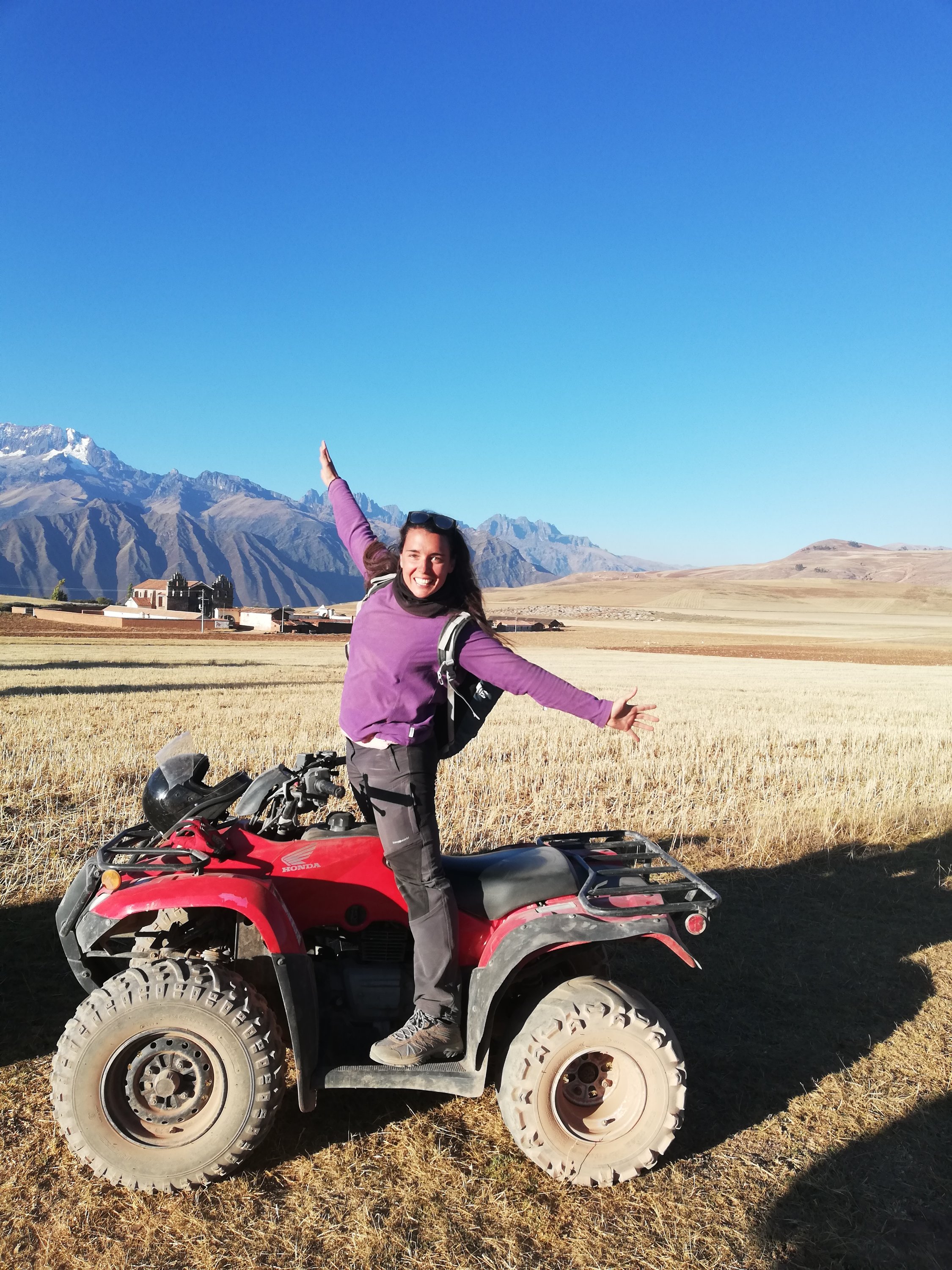 Helena va con Cris. Cris de paquete y yo voy sola. Llegamos hasta una especie de mirador donde, para hacer la foto teníamos que pagar 70s pero no hemos aceptado. (más tarde nos hemos enterado que con los 70s podíamos acceder a otros sitios pero que igualmente no hubieramos podido ver…). Hemos vuelto con los quads, esta vez cris conducía y yo iba de paquete y hemos podido ver unas vistas increíbles del lugar. El paisaje era muy chulo, sólo por eso ya ha valido la experiencia.