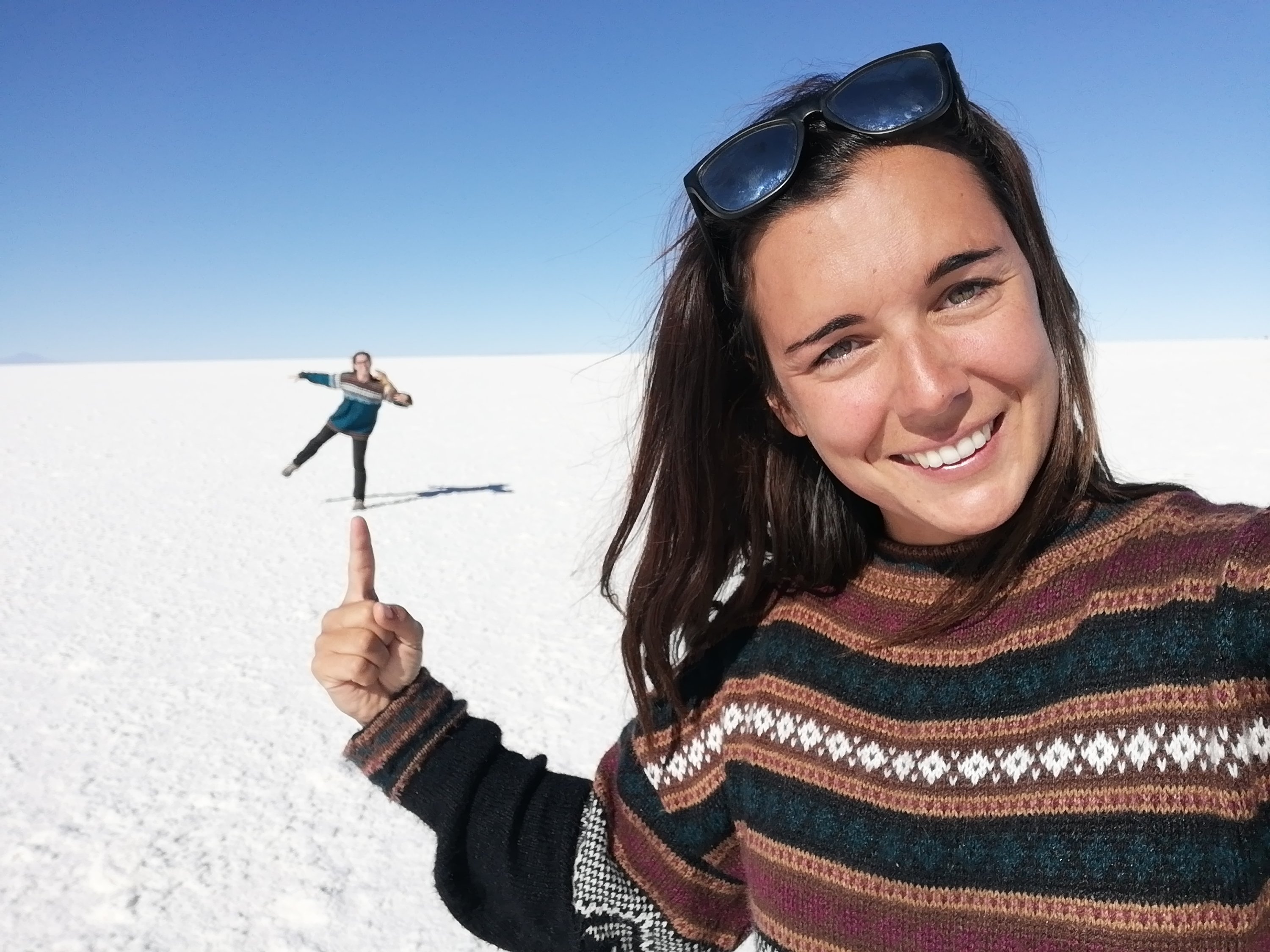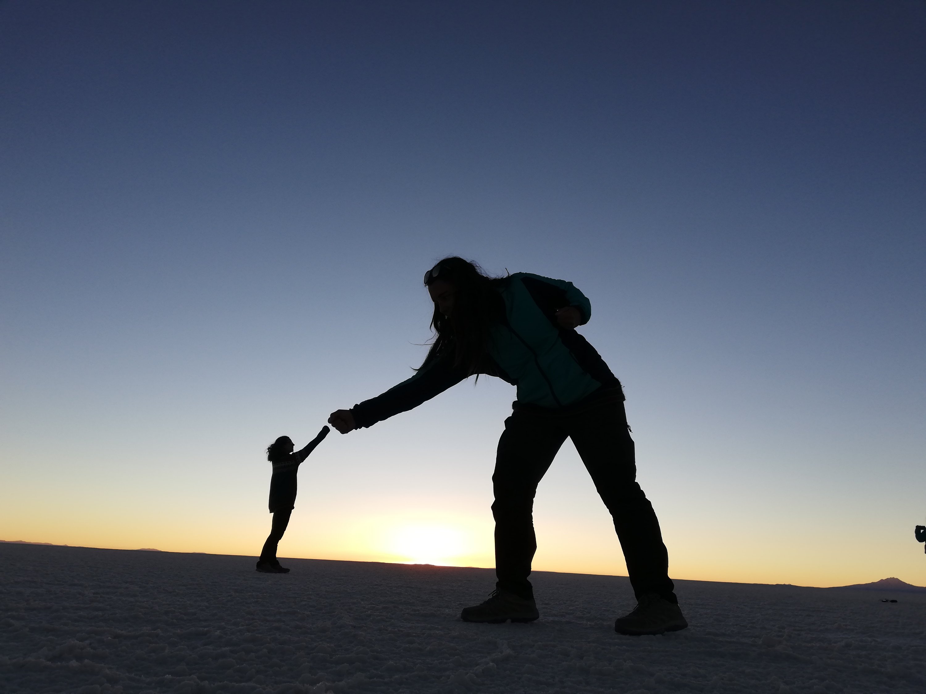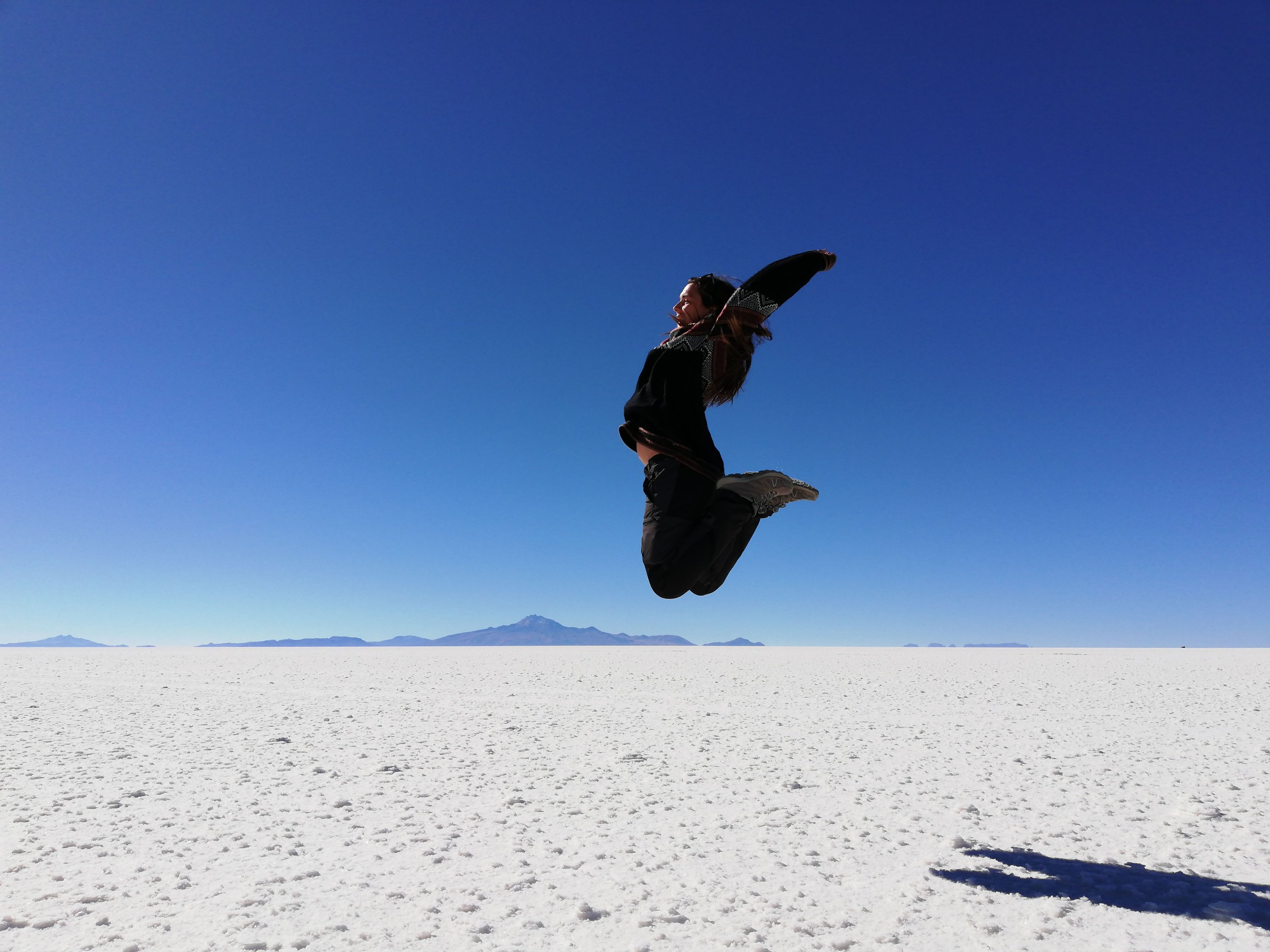 La segunda parada es en un mercado artesanal local, donde nos dejan ahí durante más de 30 minutos para que compremos cualquier tontería.Como es de esperar y como buenas guiris que somos, aprovechamos para hacer alguna compra de recuerdos.De nuevo en el 4×4 y, a escasos minutos del mercado, entramos en el salar de Uyuni.Exactamente no se que esperábamos encontrar pero la primera impresión es que estamos en la nieve. Todo un paisaje completamente llano y blanco. Imposible pensar que todo aquello que estamos pisando es… Sal.