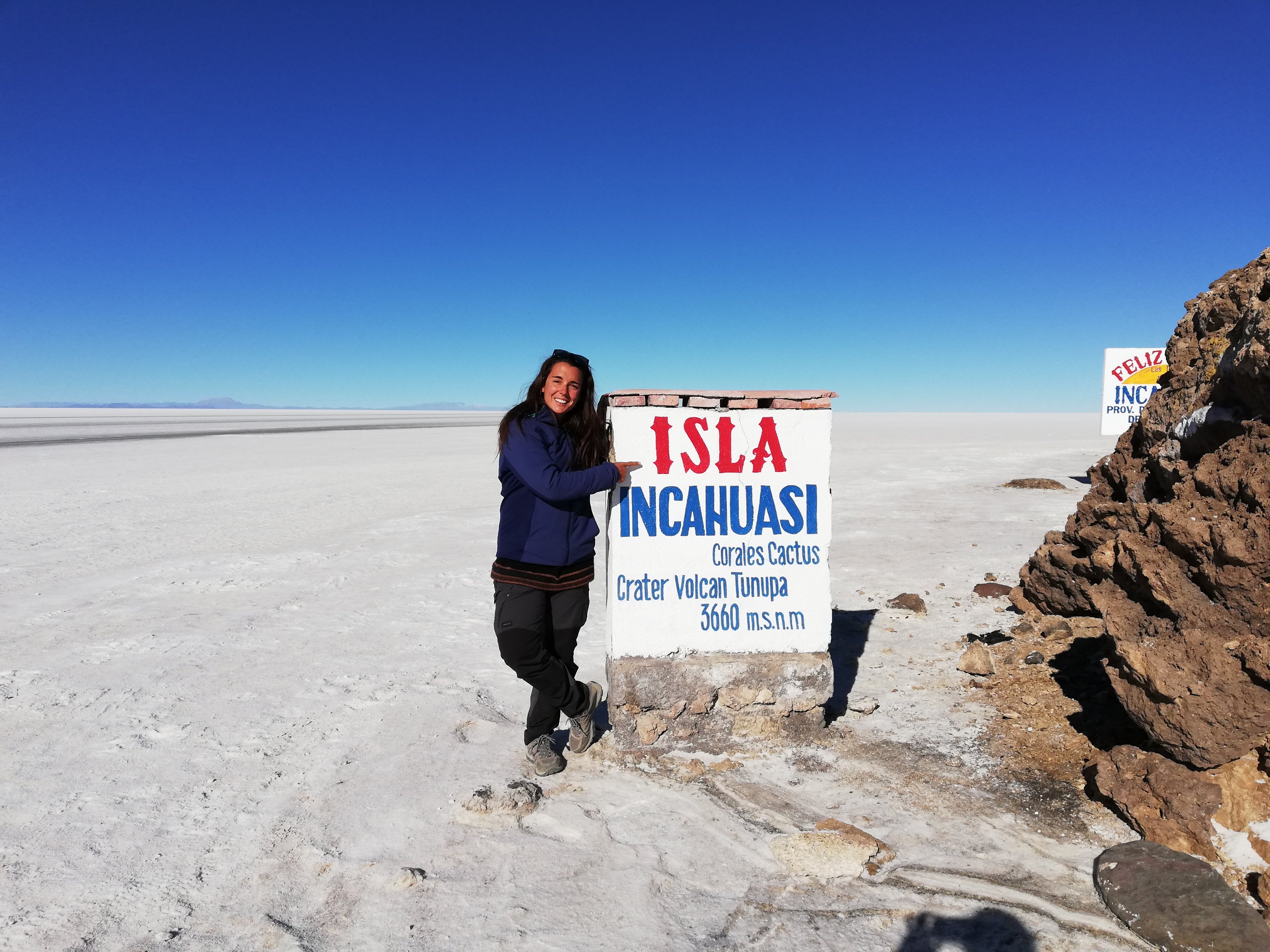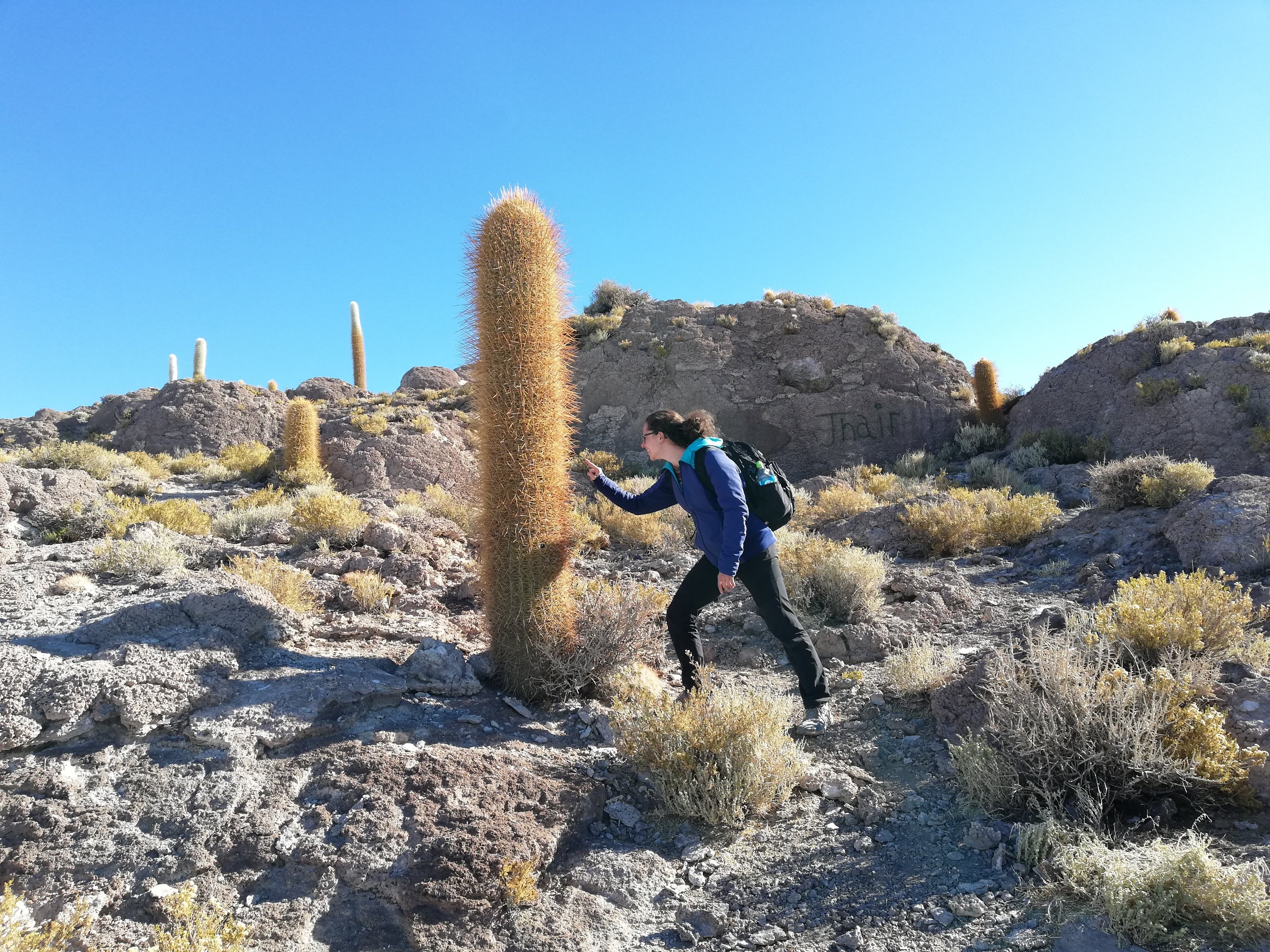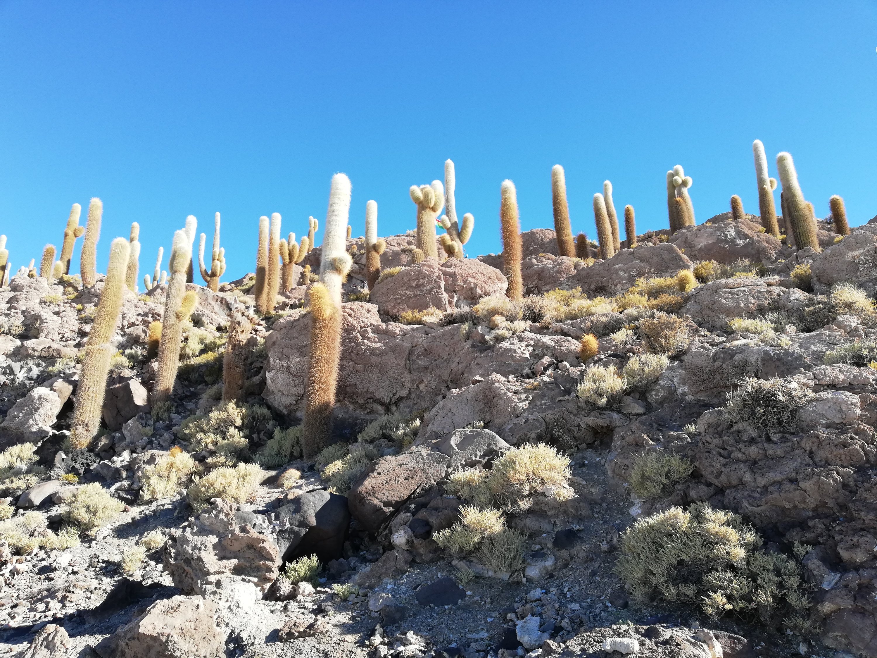 Seguimos la ruta hasta una isla de cactus. La gente paga por subir y fotografiarse. Es cierto que ese monton de tierra con cactus en medio del desierto de sal es bastante peculiar… Pero decidimos no pagar para ello y rodeamos la isla caminando.