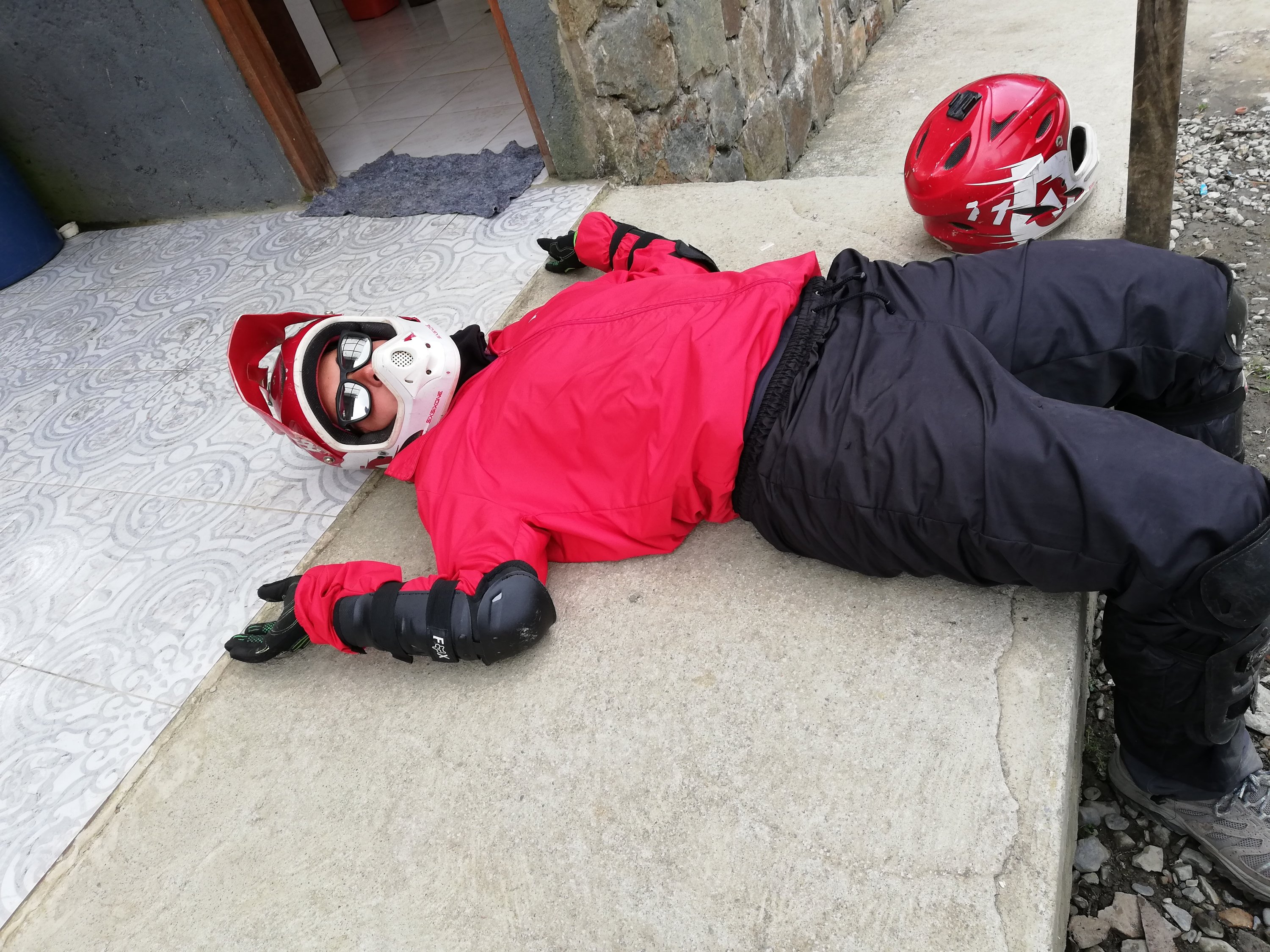Nos dan la ropa, casco y protecciones y nos hacen un brefing para inútiles. Empezamos el descenso por una carretera muy poco transitada, en muy buen estado. Hacemos varias paradas para reagruparnos pero cuando vamos rodando podemos coger gran velocidad. El frío se nota y se congelan las neuronas!!