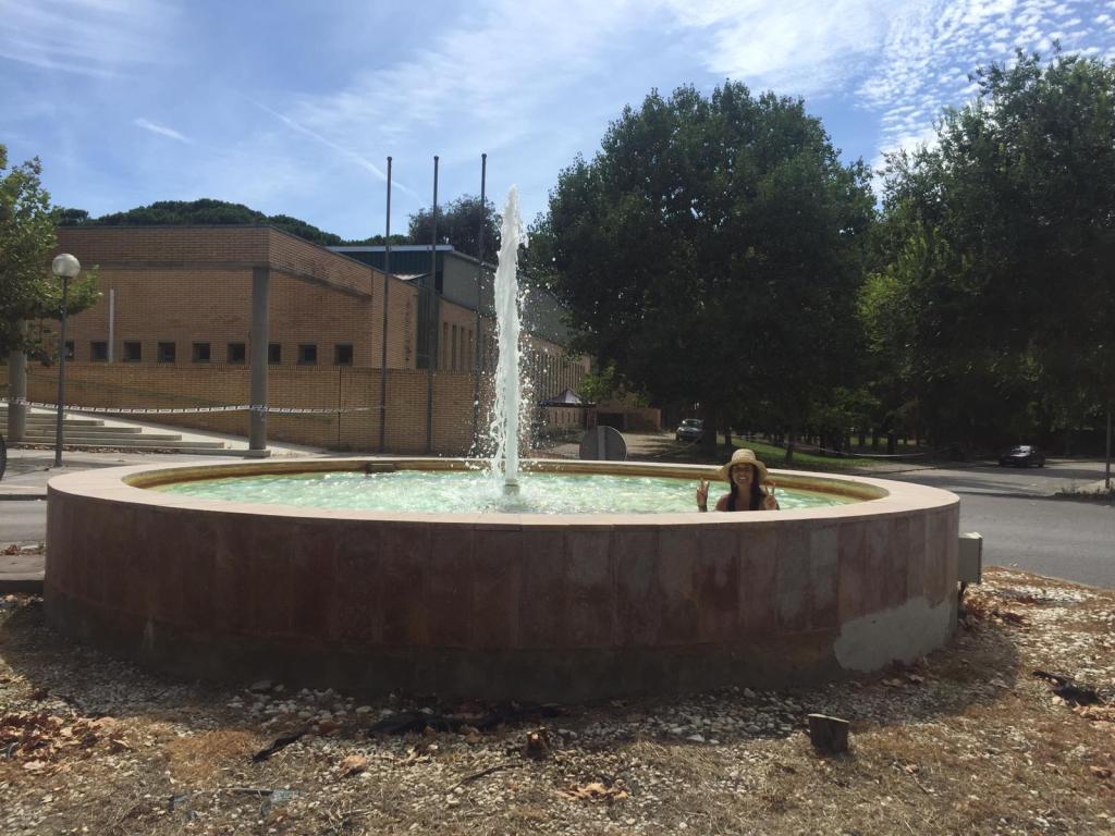 Tomamos algo en un bar y vamos a las piscinas municipales. Para nuestra sorpresa, no nos dejan entrar a menos que compremos el bono de 10, así que nos refrescamos un poco en el río y luego en una fuente (donde unos policías nos han llamado la atención, pero hemos explicado lo de las piscinas y ya está…)
