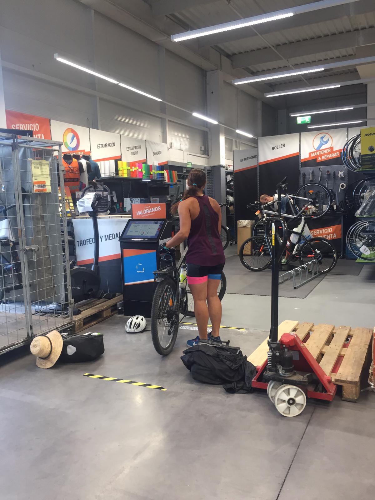 La mayor parte del recorrido transcurre por una pista asfaltada, cruzando alguna carretera secundaria hasta llegar a la zona de playas, con unas vistas espectaculares. Por ese camino, el cambio de mi bicicleta ha sufrido un desajuste y no podía cambiar de plato, aparte los piñones saltaban solos. Necesitábamos ir a un mecánico. Hemos llegado a Somo y hemos cogido un barquito que nos ha acercado a Santander y, ahí, hemos seguido las flechas hasta desviarnos al Decathlon, donde tras casi 30 minutos de ajuste, me han devuelto la bicicleta.
