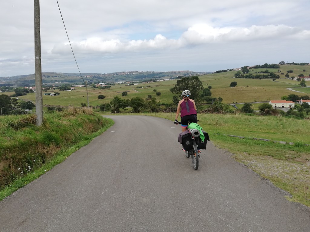 A 7km de San Vicente de la Barquera, un buen hombre nos has dicho que siguiéramos por la zona de playas, que era muy bonito. Así que le hemos hecho caso (en qué momento….). Las vistas muy bonitas, ahora las subidas y bajadas aún eran mejor. Un rompe piernas de verdad.