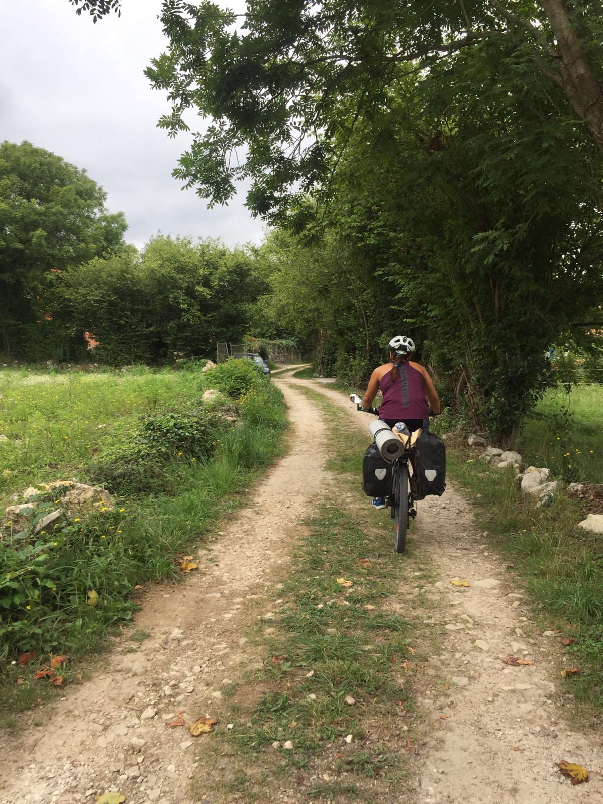 La salida de San Vicente, no nos deja indiferente te. Empezamos con una subida bastante interesante que nos hace sudar las primeras gotas del día. El camino transcurre al lado de la carretera, una carretera con poco tráfico así que genial para nosotras. Como ayer, hay un constante sube y baja pero hoy es más llevadero que ayer.