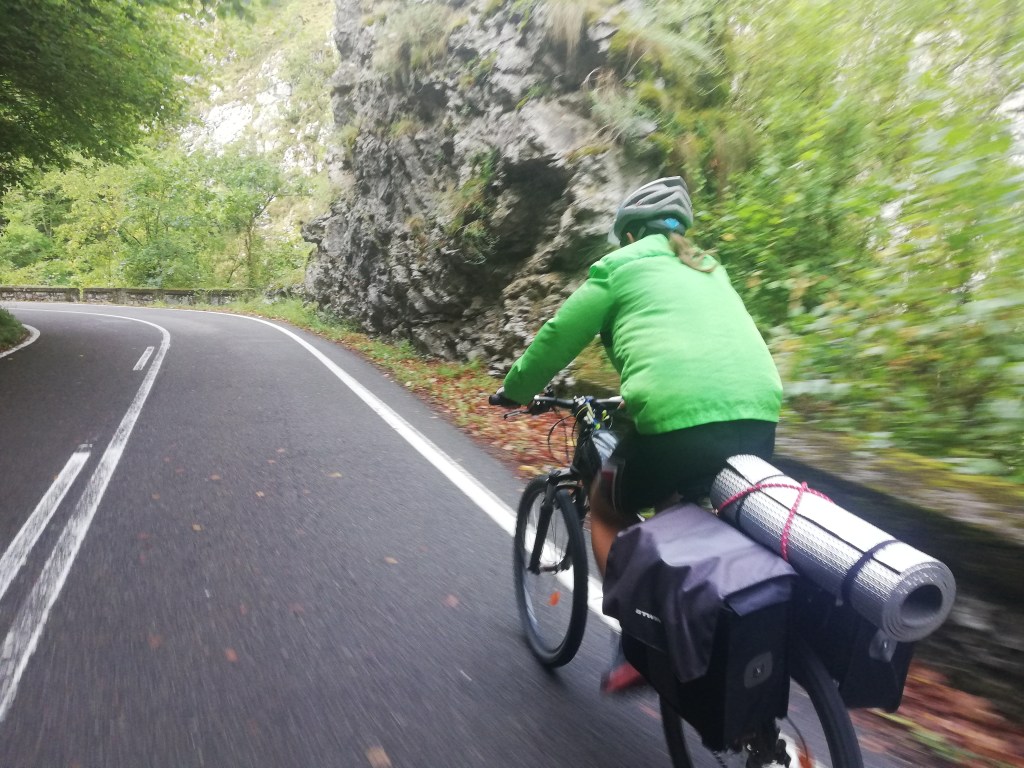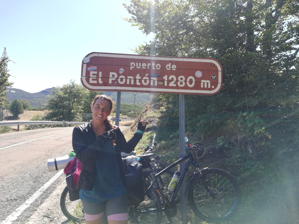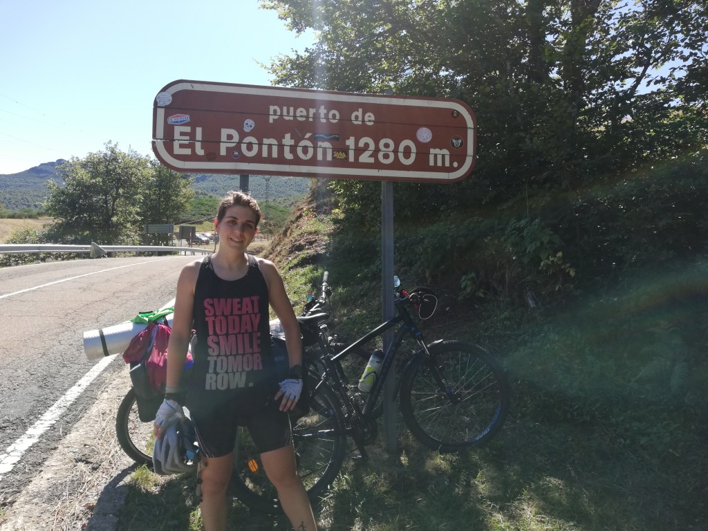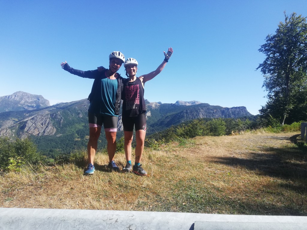 Una vez arriba, hemos hecho la foto en lo alto del puerto, nos hemos abrigado y comido un platano. Durante la subida hacia fresco (y eso que durante los últimos km hemos encontrado el sol) pero entre que estábamos un poco sudadas y en la sombra hacia fresco, no acabamos de entrar del todo en calor.