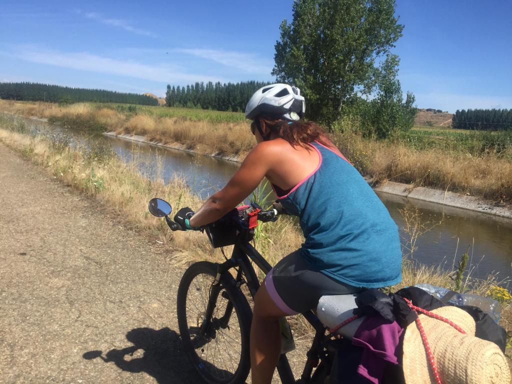 A unos 22 km antes de León, nos hemos desviado para ir pedaleando al lado de un canal y volver a encontrar las flechas amarillas que se juntaban, esta vez, con el camino francés.