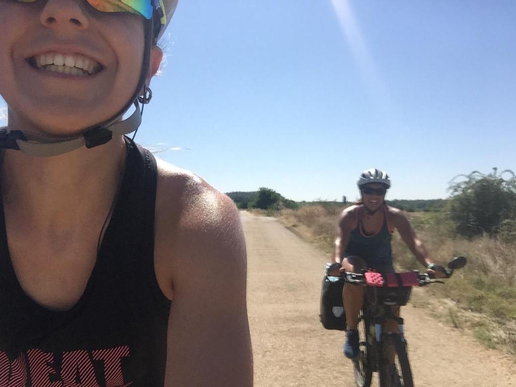 Hemos pedaleado tranquilas y a una velocidad aceptable pues hemos encontrado bajadas y, aunque en ocasiones no lo pareciera, había un pequeño porcentaje descendente que nos hacia ir más rápido de lo común.